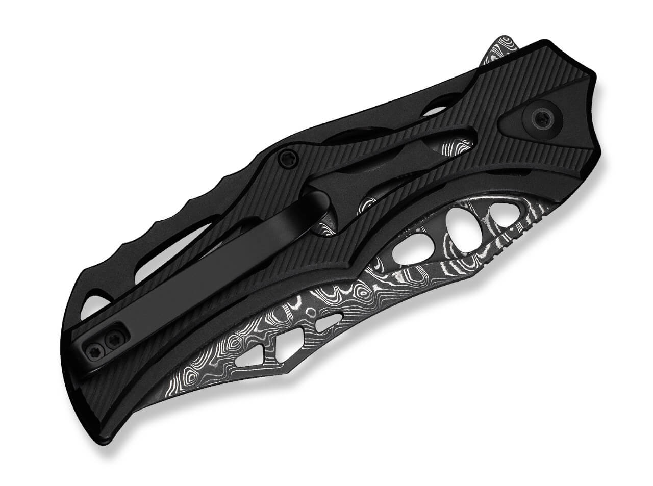 Avantgarde in Reinform. Futuristische Linien, das Ganze wechselt sich mit dem Nichts ab. Das CIVIVI Biophase verkörpert diesen Widerspruch als absolut alltagstaugliches Taschenmesser mit dem besonderen Flair. Auffällig sind die Durchbrüche an der kugelgelagerten Damast-Klinge sowie dem schwarzen Griff aus Aluminium und G10, womit Funktionalität mit Ästhetik und einem geringen Gewicht vereint wird. Geöffnet wird der Folder über den Flipper; die Verriegelung übernimmt der intuitive Button-Lock. Mit umsetzbarem Tip-Up Clip.