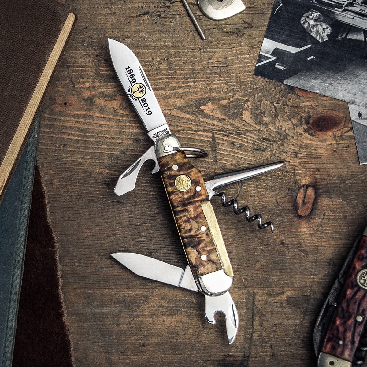 Heute blicken wir auf eine mittlerweile 150-jährige Firmengeschichte zurück, in der die Böker Manufaktur kontinuierlich und ohne Pause, mit dem Ohr am Markt, für Innovationen in der Messerbranche sorgt. Mit neuen Ideen, aber auch mit der Wahrung unserer traditionellen Werte und dem nachhaltigen Umgang mit unserer Umwelt steht unser Sortiment heute für höchste Qualität und für eine beispiellose Vielfalt. Die lange Historie des Böker Baumwerks ist geprägt von ereignisreichen Zeiten. Eines ist aber in 150 Jahren immer gleich geblieben: Unsere Leidenschaft und Begeisterung für außergewöhnliche Messer. Der internationale Erfolg unseres Produktsortiments sowie die lange Tradition unserer Messer-Manufaktur sind für uns Ansporn und Verpflichtung zugleich, auch in Zukunft hochwertige und innovative Messer zu konzipieren und zu fertigen.