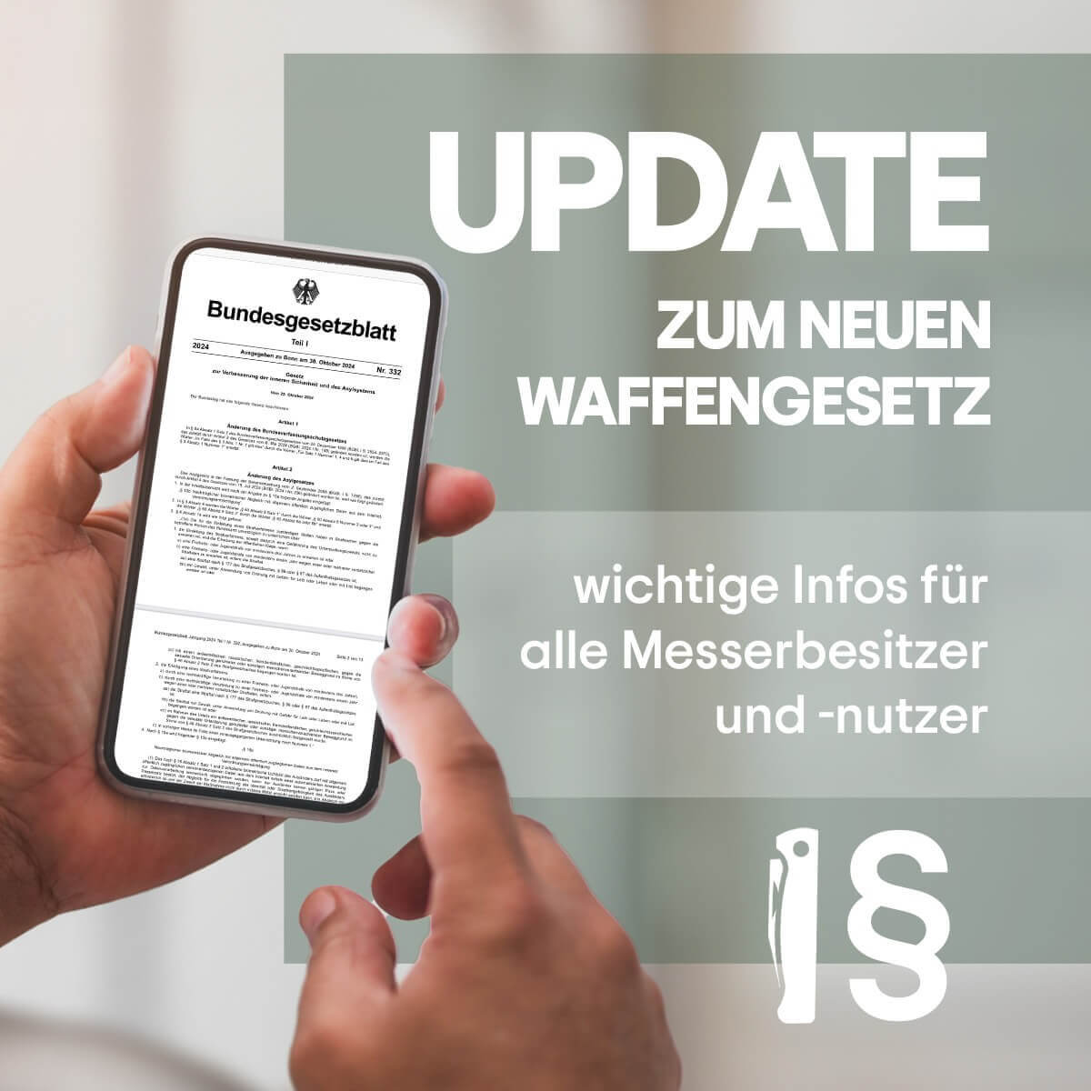 Diese Gesetzesänderungen schaffen für viele Messerbesitzer neue Herausforderungen. Wir empfehlen, sich gut über die einzelnen Neuerungen zu informieren und die gesetzlichen Vorgaben einzuhalten. Bitte beachte, dass hinsichtlich der Auslegung und Anwendung des überarbeiteten Gesetzes auch innerhalb der Waffenrechtsexperten und unserer Anwälte Unsicherheit herrscht. Exakte Auskünfte und Einschätzungen zur zukünftigen Rechtsprechung können wir dir nicht liefern.