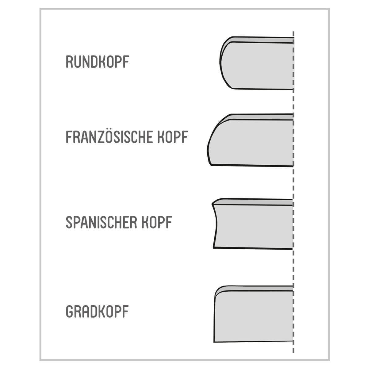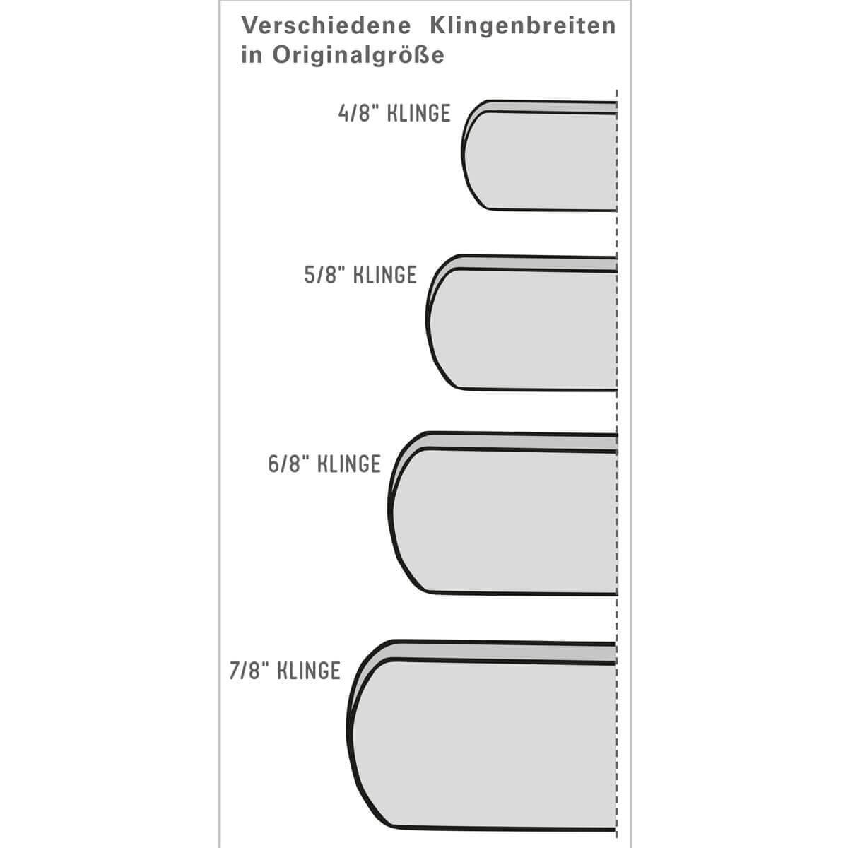 Die Formen von Rasiermessern sind weitgehend durch nationale und lokale Traditionen sowie durch persönliche Vorlieben bestimmt. Dennoch gibt es unterschiedliche Vorzüge der einzelnen Formen. Die Breiten der Klingen werden traditionell in Achtel Zoll angegeben, basierend auf der angelsächsischen Einheit Zoll (entspr. 25,4mm). Eine 8/8“ Klinge ist also ein Zoll breit, eine 4/8“ Klinge einen halben Zoll. Die 5/8“ breite Klinge ist die am häufigsten verwendete Form. Ab 4/8“ und schmaler werden die Messer vor allem von Frisören zum Ausrasieren des Nackens oder zum Effilieren verwendet. Eine breite Klinge gleitet durch ihr Gewicht ruhiger über die Haut und kann mehr Seife und Barthaare aufnehmen, bevor man sie abstreifen muss. Mit schmalen Klingen lassen sich leichter und präziser Innenradien und Konturen bearbeiten. Als Kopfformen gibt es den Rundkopf, den Gradkopf, den Spanischen Kopf und den Französischen Kopf. Mit dem Rundkopf fällt die Handhabung am leichtesten. Er ist daher für Einsteiger sehr geeignet. Die übrigen Köpfe bieten durch ihre definierten Kanten Vorteile beim präzisen Ziehen von Konturen.