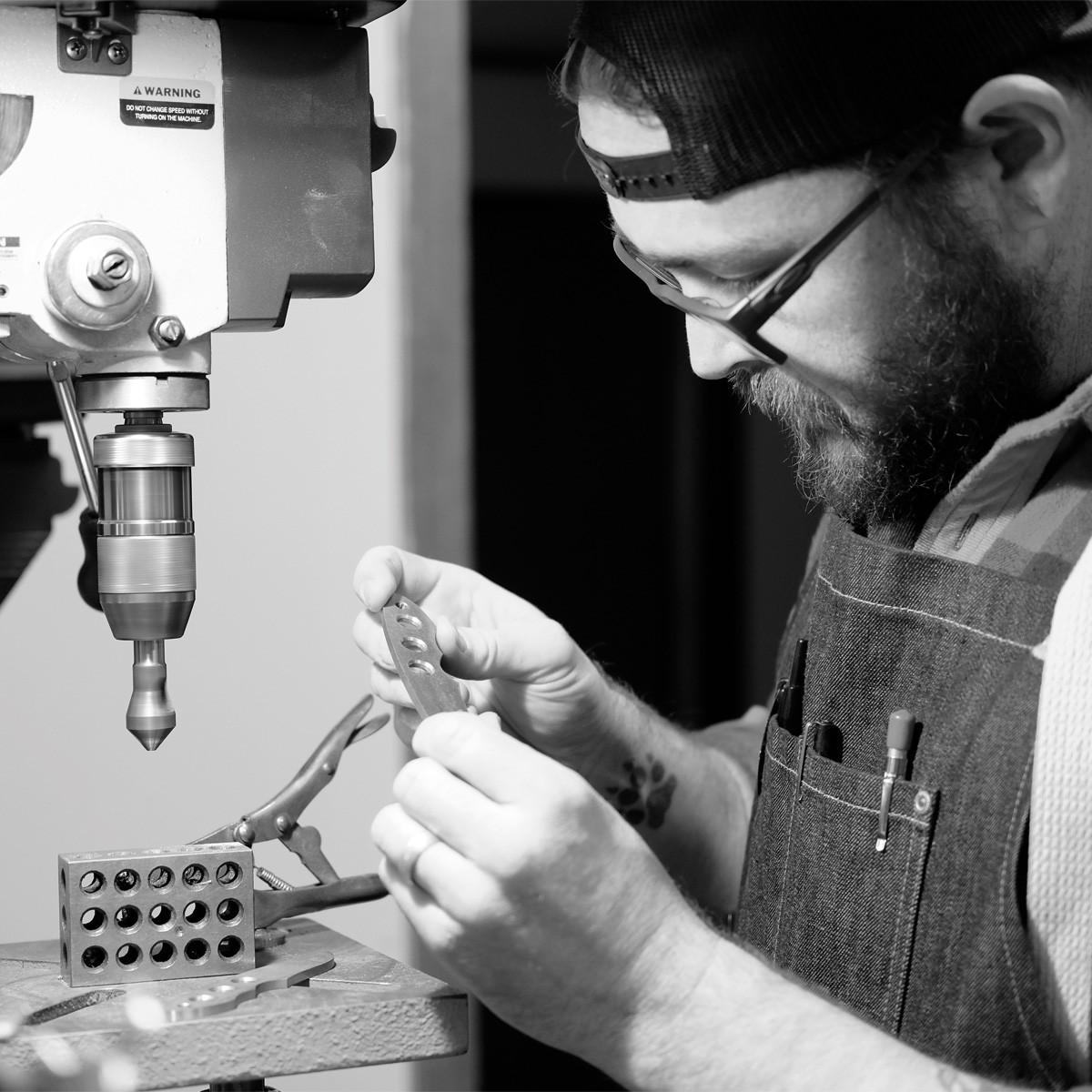 Der erste Messermacher, mit dem ich in Kontakt kam, war Joe Cordova aus New Mexico. Er selbst hatte noch mit den Messermacherlegenden Bill Moran und Bob Loveless zusammengearbeitet. Joe hat ein breites Spektrum, das von Reproduktionen historischer Stücke bis zu modernen Entwürfen reicht, und er schmiedet oft selbst, fertigt aber auch klassisch am Bandschleifer. Seine breitgefächerten Fähigkeiten und seine Vielseitigkeit als Designer haben mich als jungen Messermacher stark beeinflusst, denn er hat mir die Augen dafür geöffnet, was alles möglich ist, wenn man sich nicht auf eine bestimmte Stilrichtung oder Fertigungsmethode beschränkt.