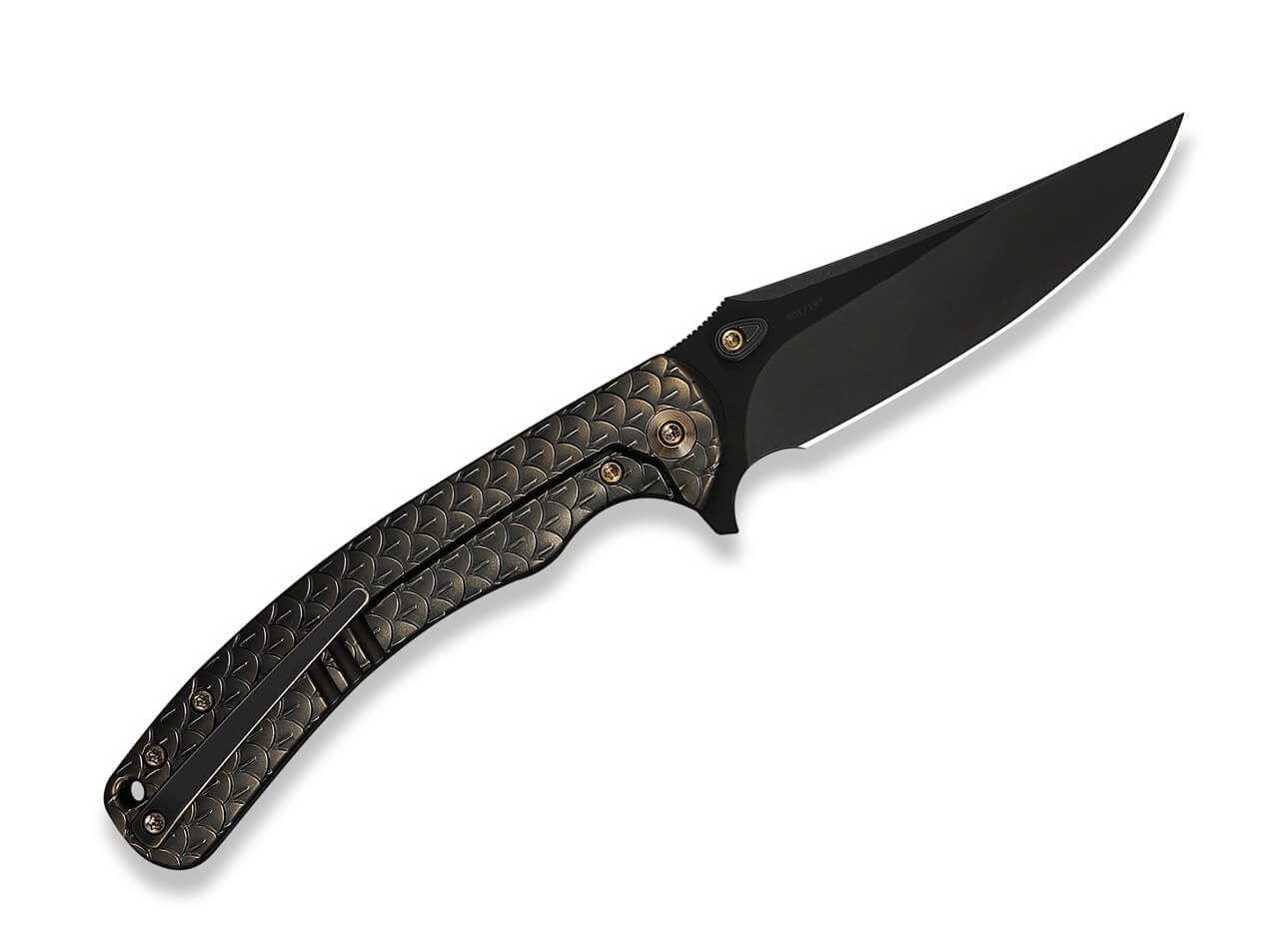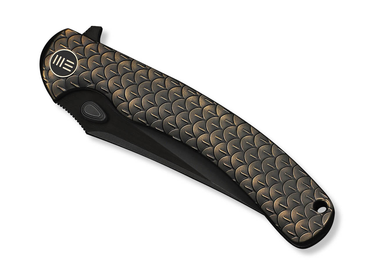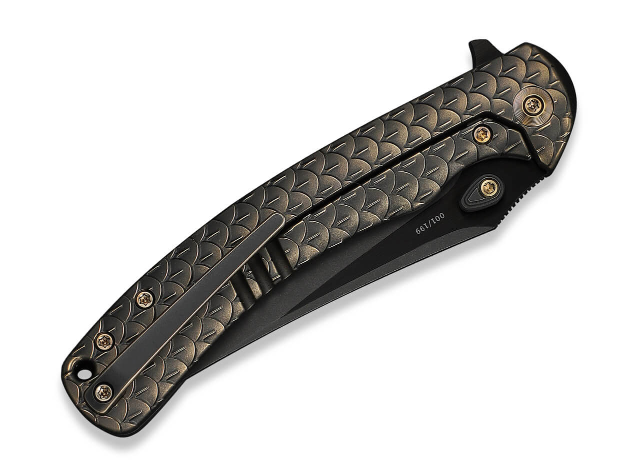 Das WEKNIFE Dracarys Flipper & Daumenpin Knife in der Bronze & Black Titanium Ausführung ist ein exklusives Premium EDC Messer mit einer besonders kontrastreichen und modernen Optik. Diese streng limitierte Sonderedition ist auf nur 199 Exemplare weltweit begrenzt und Teil der 12th Anniversary Special Edition, wobei jedes Messer mit einer individuellen Seriennummer sowie einem signierten Echtheitszertifikat ausgeliefert wird.