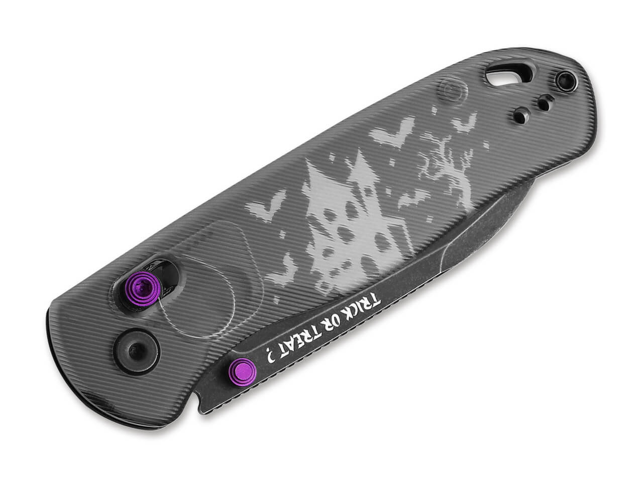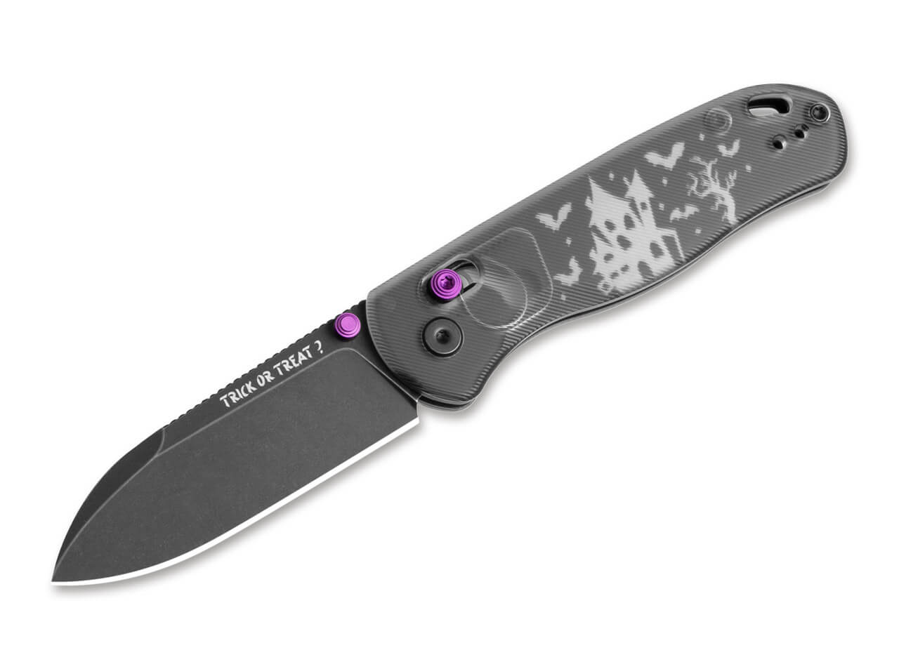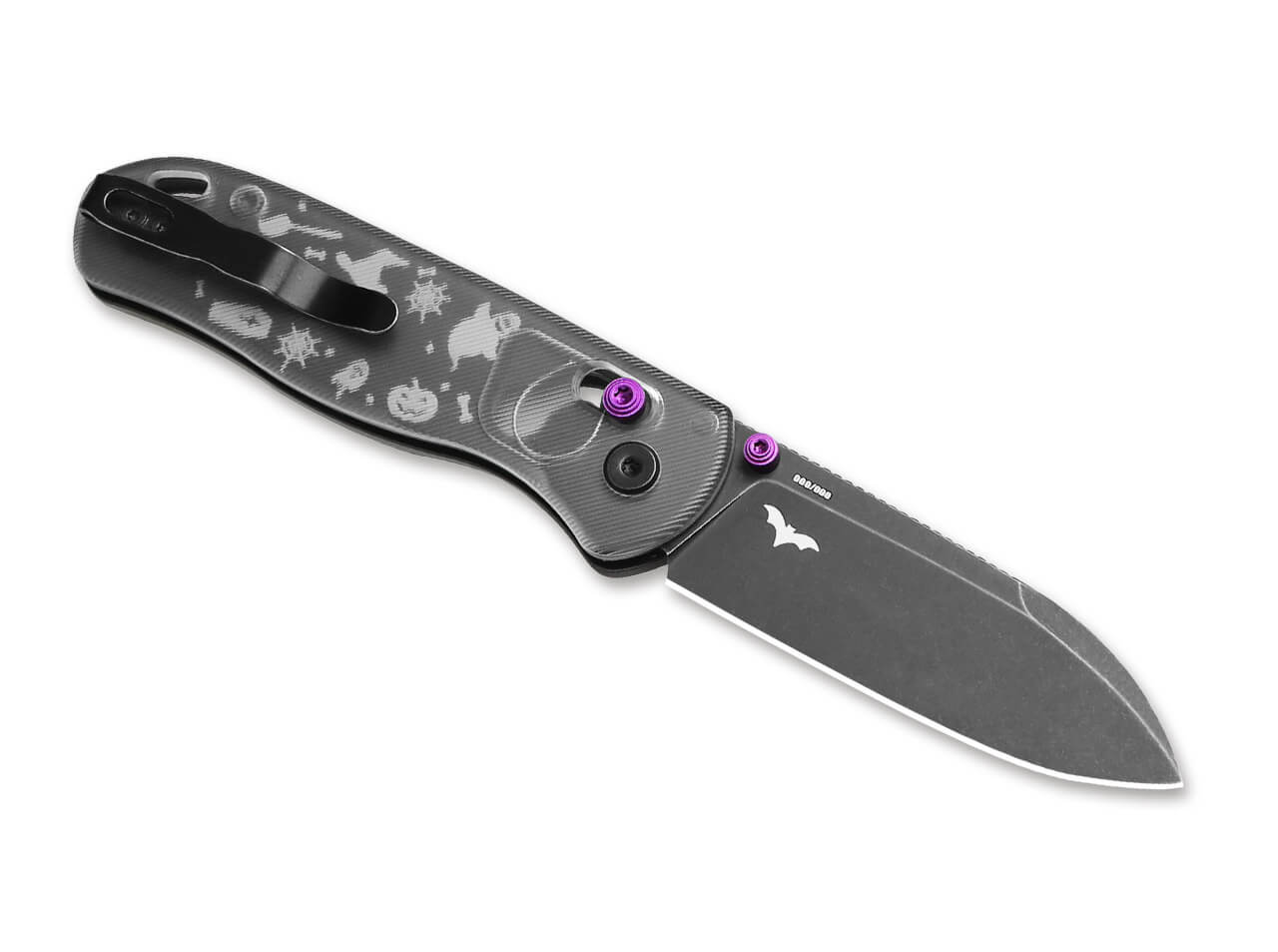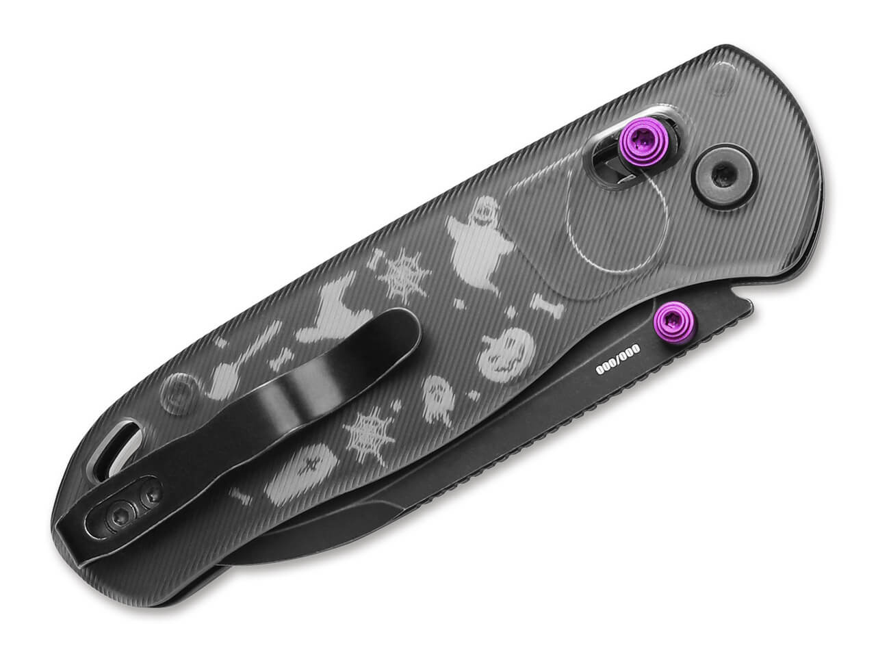 Mythos oder Realität? In Australiens Bäumen lauert einer Sage nach ein heimtückischer Jäger, der einem Koala Bären sehr ähnelt, und sich auf seine Beute blitzartig herabfallen lässt. Zweifelsfrei nachgewiesen hingegen ist die Existenz des Kizer Drop Bear. Mit seiner schwarzen Klaue aus Nitro-V stürzt sich das Messer auf tägliche Schneidarbeiten und macht kurzen Prozess. Geöffnet wird das Messer per Daumenpin und durch den Clutch Lock Mechanismus entriegelt. Der transparente Griff aus Acryl macht das Messer beim Blick in den Himmel nahezu unsichtbar. Mit Fangriemenöse und umsetzbarem Tip-Up Clip. Sonderversion mit Halloween-typischen Motiven auf Klinge und Griff.