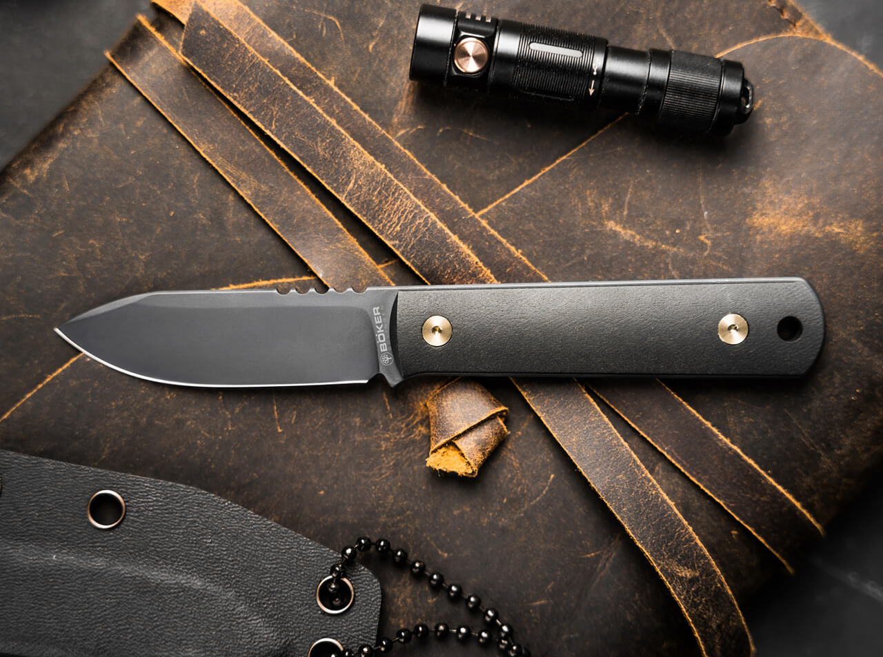 Includes a precision-fitted Kydex sheath with ball chain.
