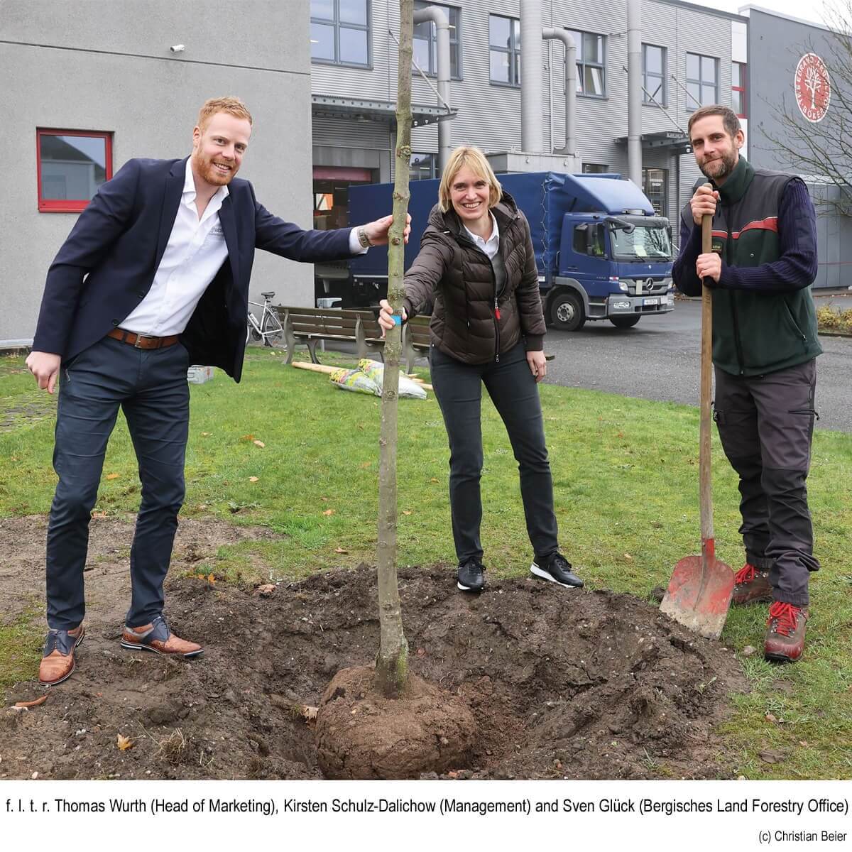 The Aesculus carnea Briotii, known as the red-blossoming horse chestnut, bears bright red blossoms and in just a few years will serve as a quiet retreat for birds and insects as well as a natural source of shade for our staff. We would like to thank you for your important contribution to regional nature and climate protection!
