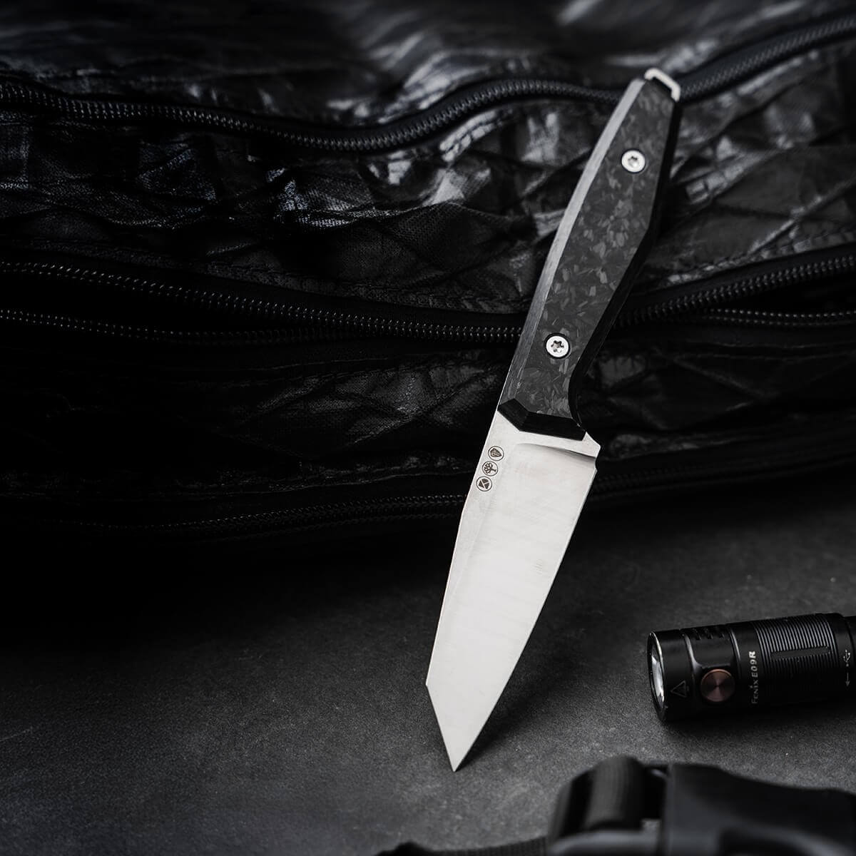 For the blade, I particularly like steels with high hardness and edge retention, e.g. CPM-S-90V, M4, Cruwear, D2, K390 and others. In many cases, I cannot understand the motivation for VG-10, 440C, N690, AUS-8, O1, 1.2842 and similar (apart from kitchen knives). For me, long-lasting, reasonably high sharpness is important. I am therefore delighted that the current Boker CPM-3V blades are very well made. I prefer to equip my blades with a flat grind, as this combines good cutting properties with good repairability and can be thinned if necessary. I prefer synthetic materials for the handle, as they do not shrink or swell. They also look more uniform. G10, CFRP and Micarta are my top three.