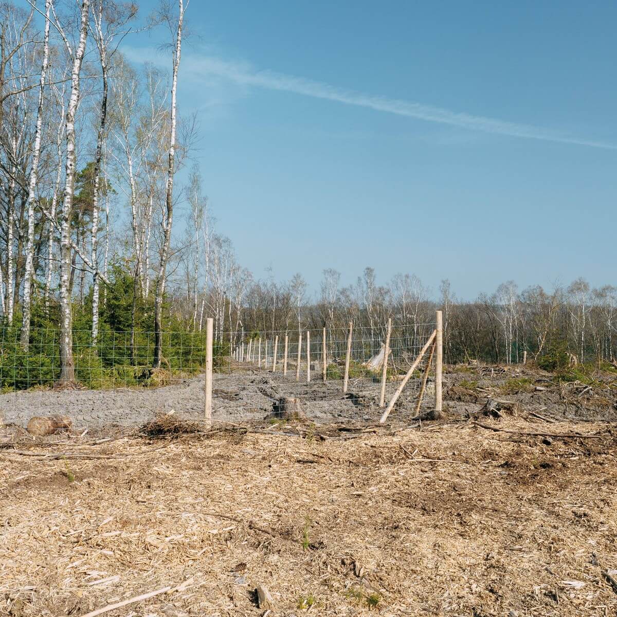 First of all, we hope that the coming spring will not be too hot and will bring sufficient rainfall. Because watering is not possible at this scale. The greatest danger to the seedlings here comes from deer. These nibble at everything near the ground and thus cause immense damage to the seedlings. Wild boars also dig up the affected areas when searching for food. For this reason, the plots are temporarily fenced off by gates to provide effective protection against deer browsing. After about five years, the deer can no longer reach the shoots, so the fencing can be removed. The stakes rot in the ground and are thus returned to nature. In the first few years it is very important to cut the young trees free of ferns and thorny bushes, as these can really crush the saplings when it snows. We are in good spirits, however, as 70% of the bare areas have been replanted.