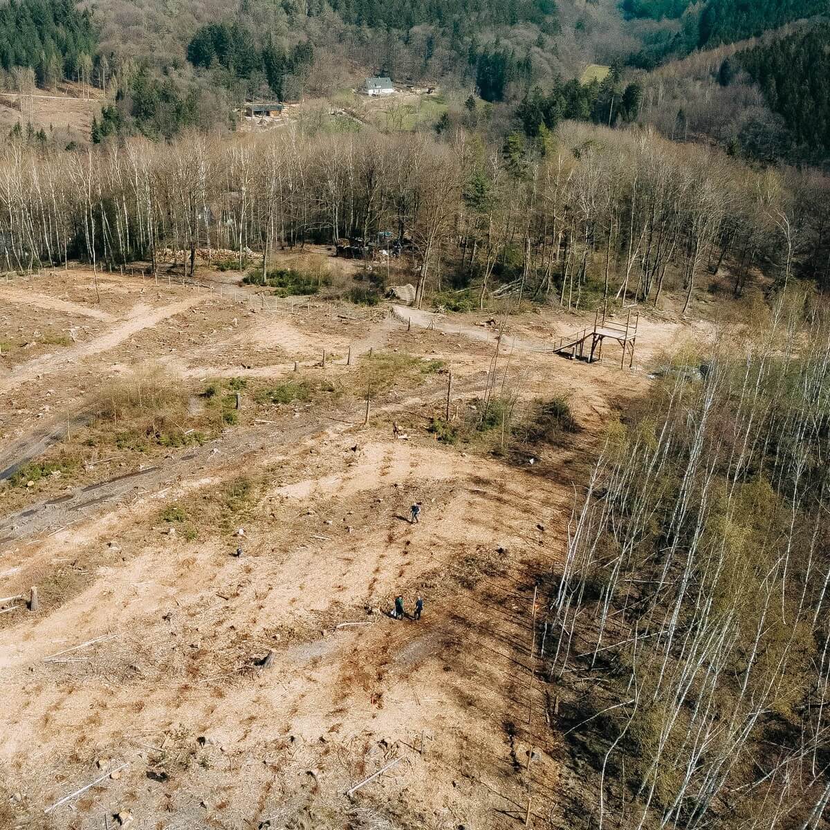 In the spring, we planted about 20,000 seedlings with 10 different tree species. In the fall, the same amount is planned again. This is enough for an area of 10 ha. With the total size of my farm of 100 ha, this means that 10% could already be reforested in one year.