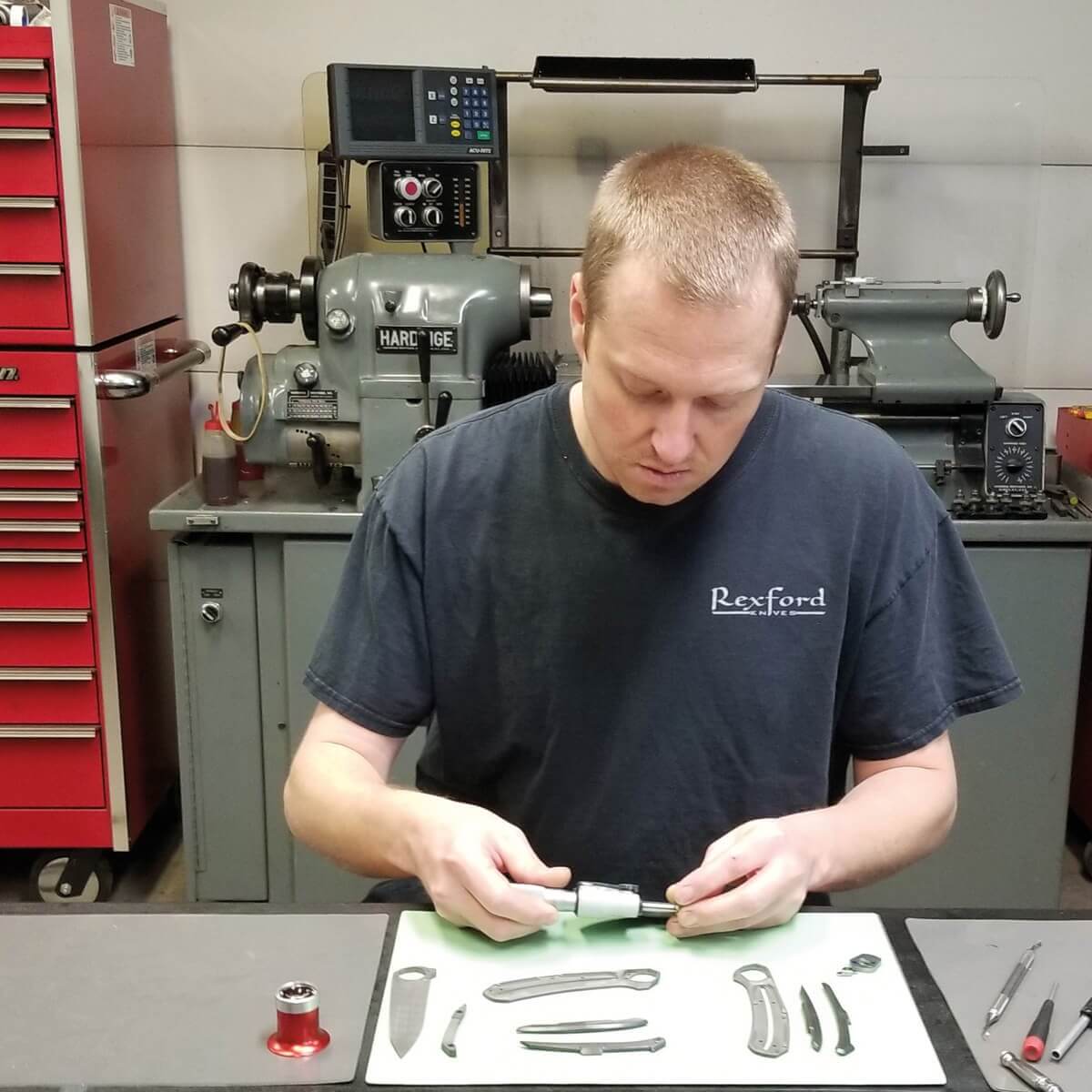 Todd Rexford's fascination with knives began in his childhood, when he visited gun shows and fairs with his father. His passion for sharp blades eventually led to a desire to build his own knives. Like most knifemakers, he started with the simplest tools and machines and perfected his own style over the years. The American from Colorado designs both pocket knives and trip knives.