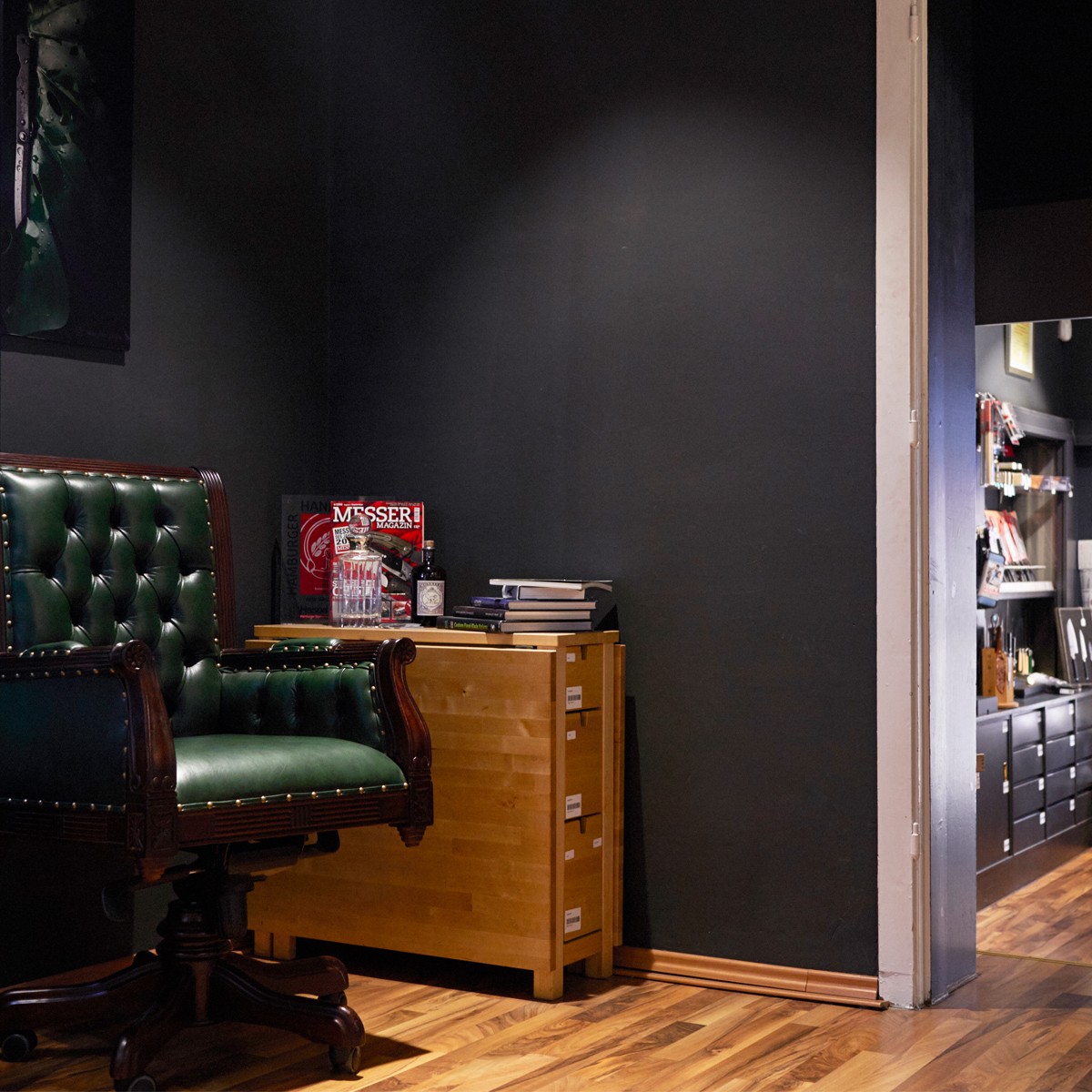 The master craftsman business has long since moved beyond specializing in antiques such as candlesticks, cutlery or teapots. "In recent years, we have built up a first-class range of knives, which includes pocket knives, fixed knives, razors and chef's knives." In the meantime, the Altonaer Silberwerkstatt has also become a fixture among knife connoisseurs in the Hanseatic city. In 2020, Maxi Hänsch expanded her business with another gem for her customers. The KnifeLounge is a feel-good oasis for knife fans including a comfortable armchair and specialist reading in a cozy atmosphere. The showroom contains fascinating knives from all over the world and takes the viewer on an exciting journey.