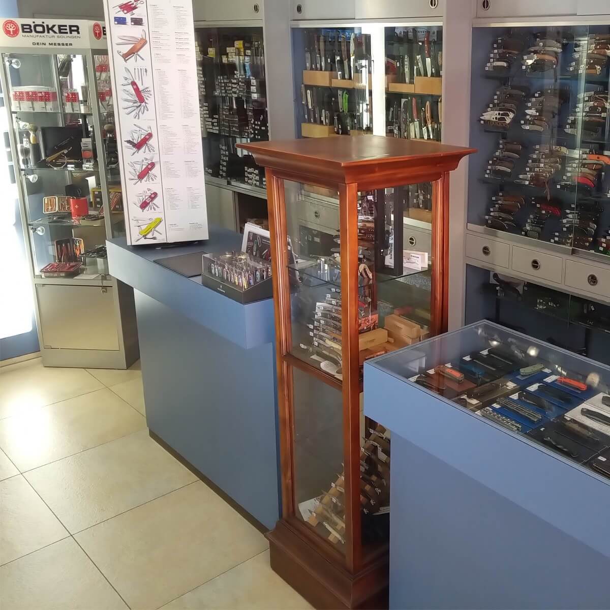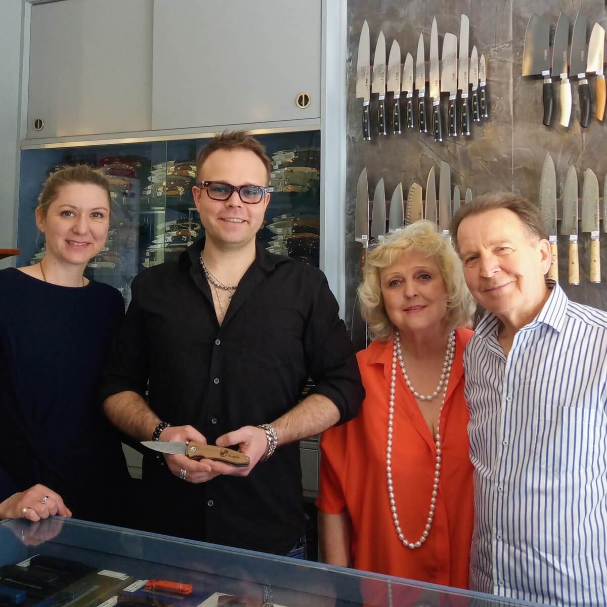 Today, the knifemaker Ingo Kobermeyer fervently continues the legacy of this esteemed guild. His domain includes two branches, one in Wiener Neustadt and the other in Mödling. His parents and wife are always at his side with help and advice. For more than 75 years, the master knife smithy Kobermeyer has been selling and professionally sharpening not only pocket knives but also chef's knives, driving knives, razors and scissors. Meanwhile, the showroom in the Wiener Neustadt branch exudes a touch of a museum, where historical swords and axes from different eras and continents cause amazement on faces.