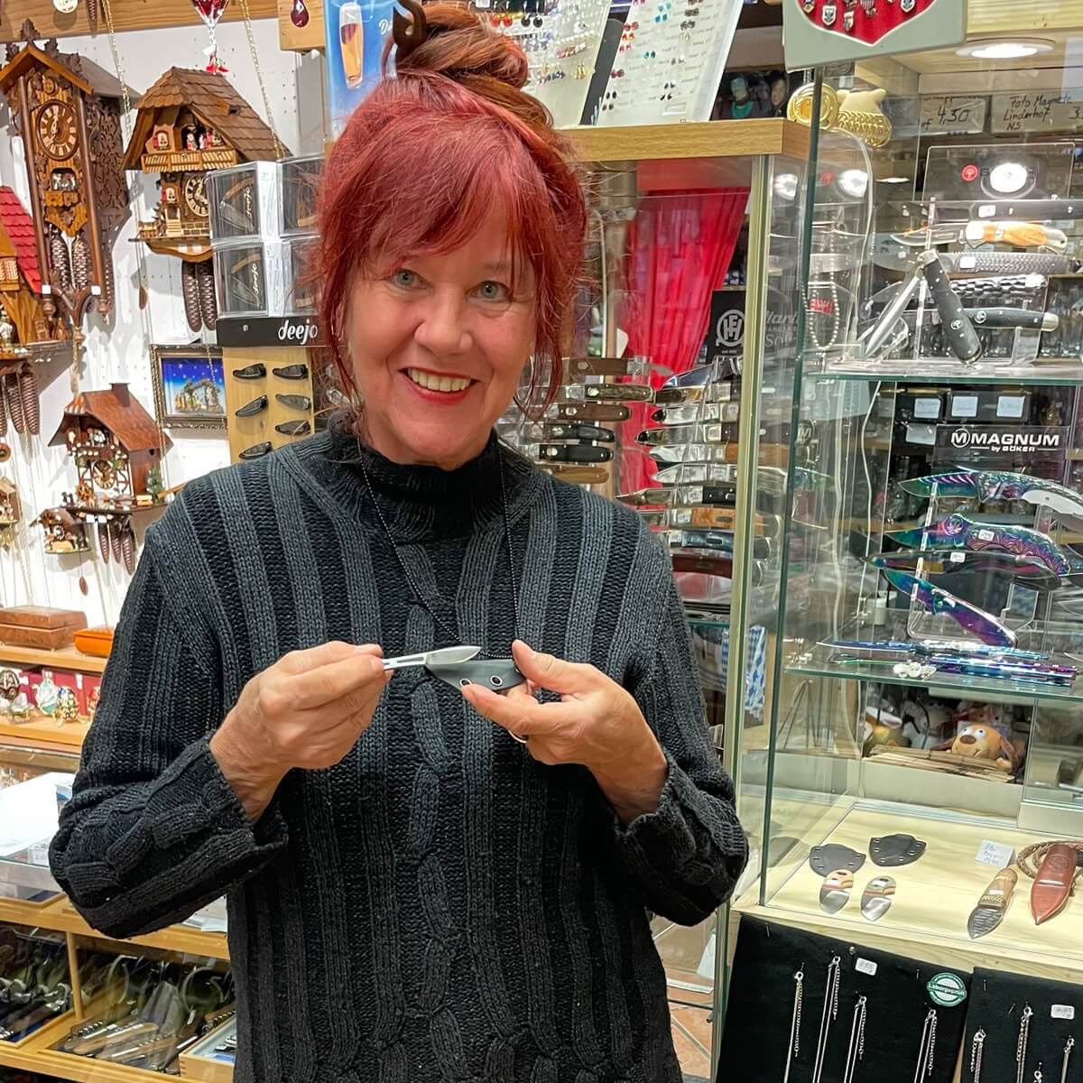 This month we are delighted to tell you about Gabriele Furtner and her long-standing commitment to the family business Souvenir Furtner in Oberammergau. "I have been working in this business for 40 years, first as an employee and for 26 years as a self-employed person. My passion for knives began at an early age, when I was given my first knife for hunting mushrooms at the age of 5." Over time, an enthusiasm for high-quality knives developed, which is also reflected in the wide range of products.