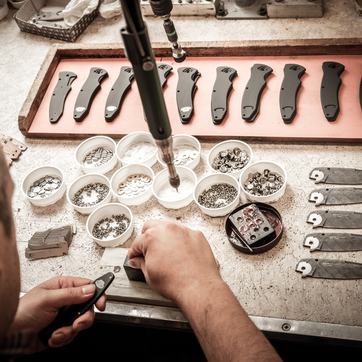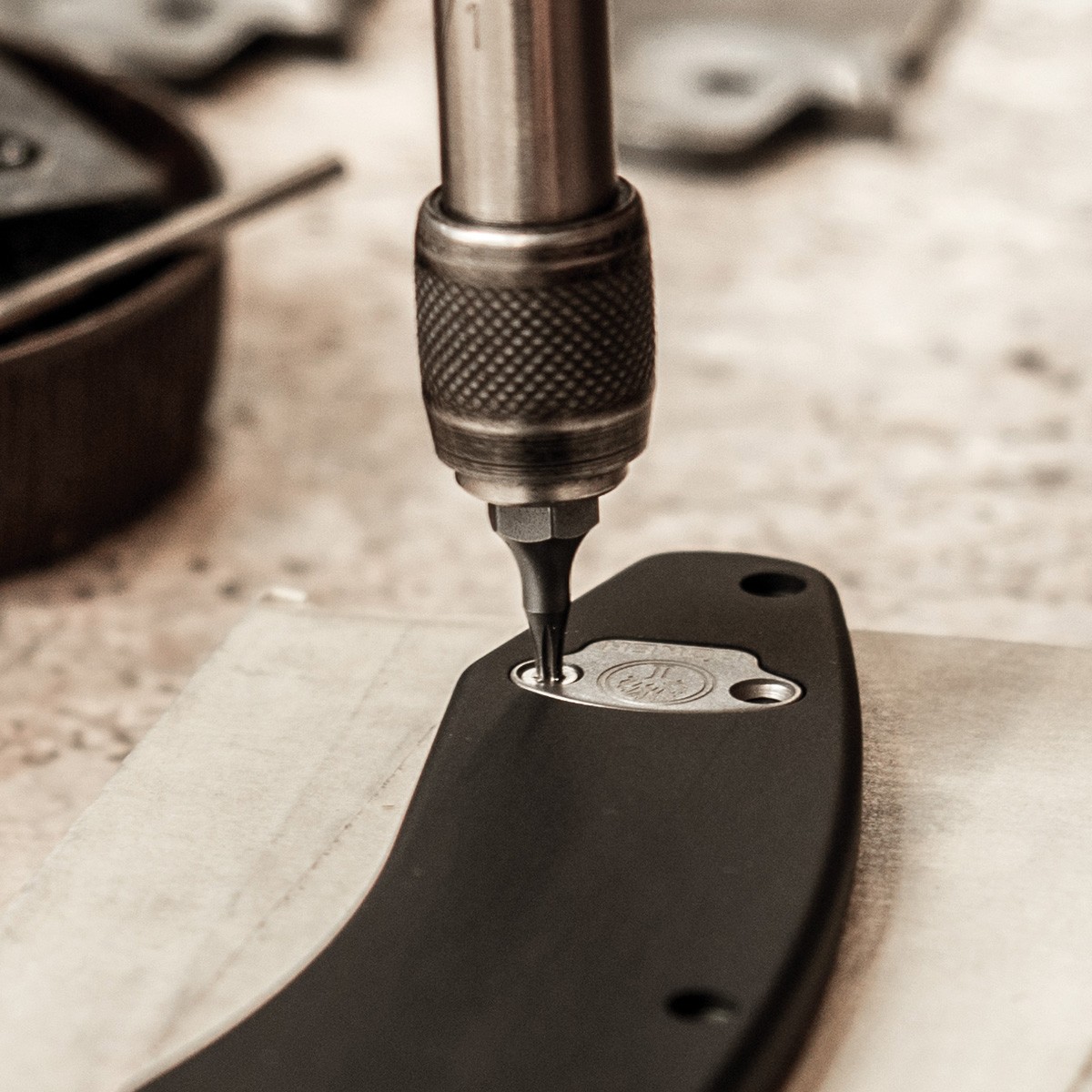 The two handles with the corresponding walnut inlay, the blade and all other components are assembled in the reider‘s workshop and then screwed together. The world-famous tree symbol decorates the cover of the alternative clip position. Since its foundation, no knife has left our factory without this seal of quality.