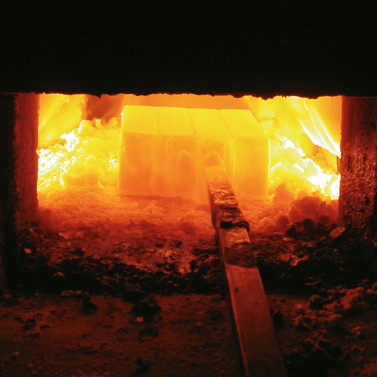After grinding, the blades are brought to the final hardness of 61 to 63 HRC in the hardening shop. At a hardening temperature of approx. 870 °C, the Damascus blades are held for several minutes before they are quenched in an oil bath. To ensure that the very brittle blades do not break in everyday use, they are set to the target hardness of 61 to 63 HRC at approx. 150 °C during tempering.