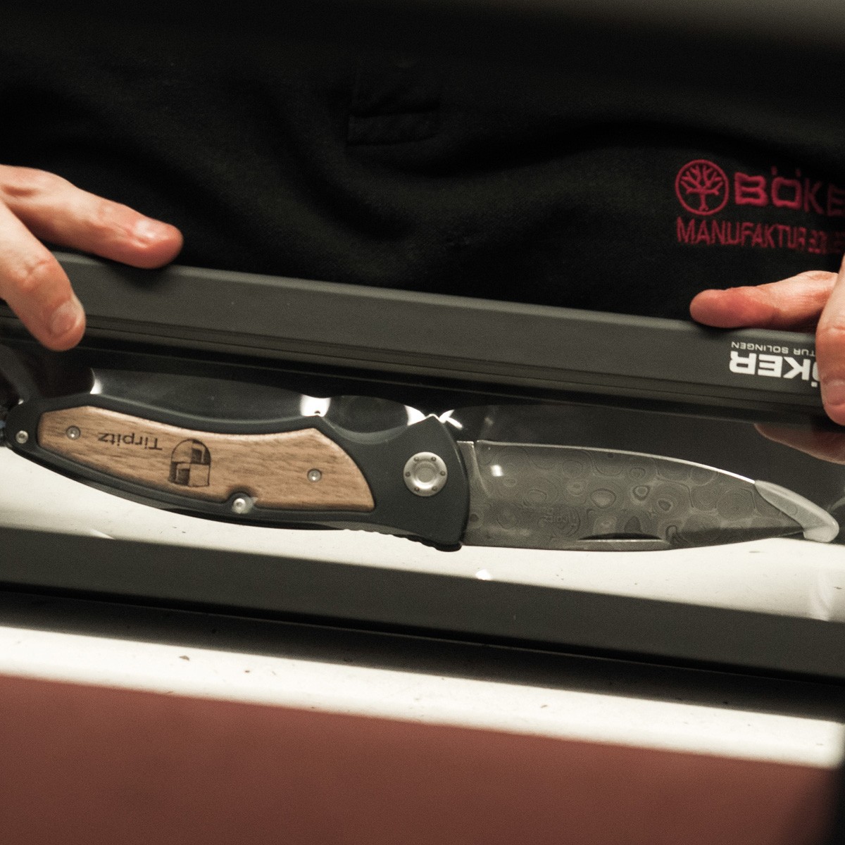 For more than 10 years, this model has shaped the Boker range like no other. The battleship of the German Navy, which sank off the Norwegian coast in 1944, served not only as eponym but also as parts supplier for the legendary Boker model Tirpitz-Damascus. Norwegian divers salvaged parts of the special armour of the Tirpitz from the fjord. From these pieces of living history, the Boker Damascus smith exclusively forges an extraordinary 300-layer Damascus with fascinating history in the pattern „Great Pyramid“. The unbelievably varied and elaborate work steps for the production of the Tirpitz-Damascus are exemplary for many products, which are still manufactured by hand today with great attention to detail, the unconditional will to perfection in craftsmanship and the passion of our employees. The high vertical range of manufacture in our manufactory is as unparalleled then as it is today.