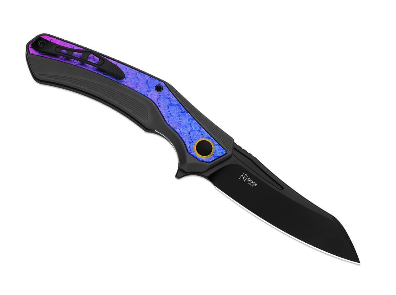 The Kizer Draca S45VN Aluminum Crystallized Ti PVD is a modern EDC folding knife with a striking material combination, blending functional performance with a distinctive visual style. Designed by Mikey Carlson, it features dynamic lines and high-quality craftsmanship.