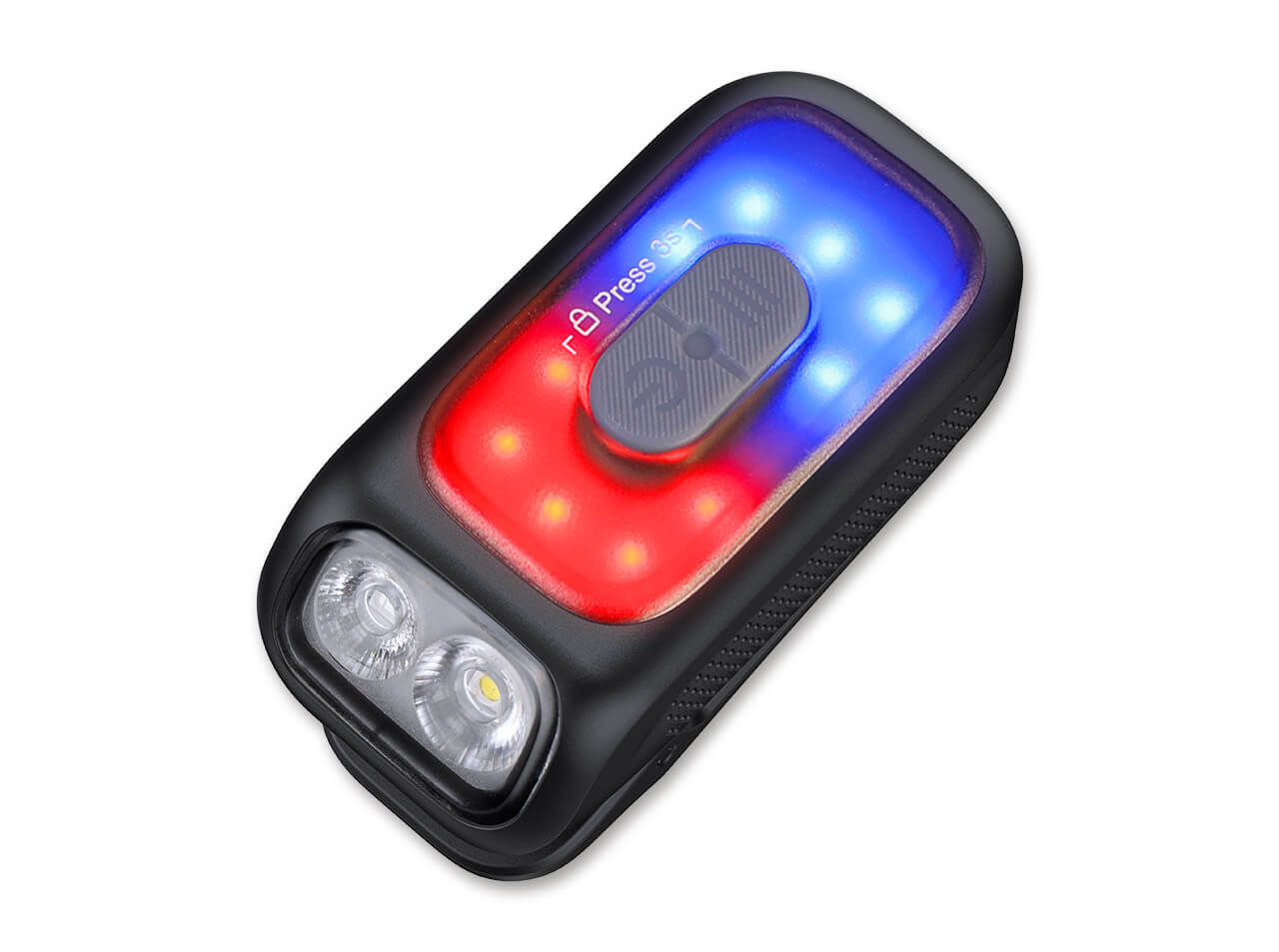 With up to 500 lumens output and a beam distance of up to 46 meters, it provides reliable illumination. In addition to white light, it features integrated red light and a multifunction side lighting system.