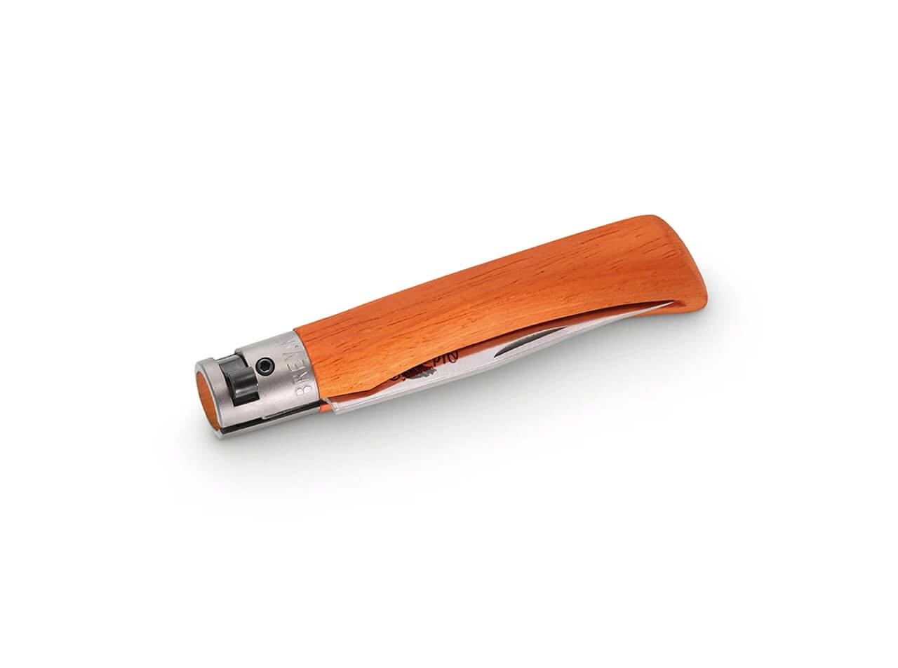 On the occasion of its 90th birthday, Antonini, founded in 1925, presented the Old Bear series, which represents a compelling interpretation of the classic utility pocketknife. The centerpieces of the knives are the wooden handles, which carry the traditional locking mechanism. A rotating ring inserted into the brass collar secures the blade in the deployed as well as closed position. As the active partner for this project, Todesco (Maniago/Italy) had already patented this mechanism in 1985 as a lock for pocket knives.