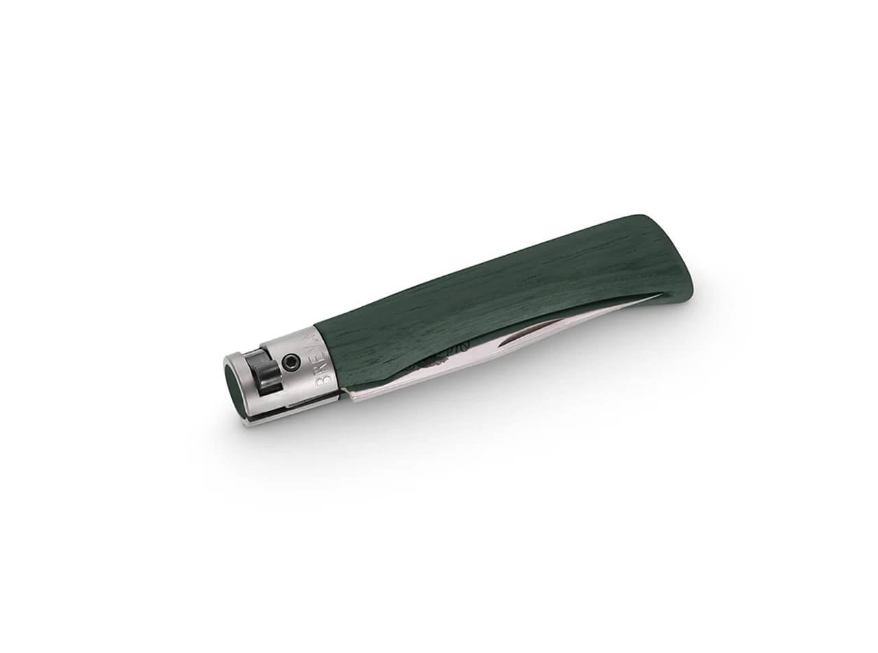 On the occasion of its 90th birthday, Antonini, founded in 1925, presented the Old Bear series, which represents a compelling interpretation of the classic utility pocketknife. The centerpieces of the knives are the wooden handles, which carry the traditional locking mechanism. A rotating ring inserted into the brass collar secures the blade in the deployed as well as closed position. As the active partner for this project, Todesco (Maniago/Italy) had already patented this mechanism in 1985 as a lock for pocket knives.