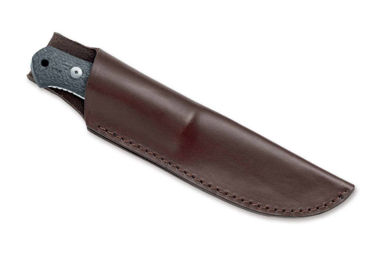 As a true full tang knife, the Viper GMR ensures maximum structural strength and resilience. The monoblock-style handle with exposed tang enhances stability while allowing for simplified cleaning and maintenance. The carbon fiber handle scales offer a modern appearance, high resistance, and lightweight performance. Sandblasted AISI 303 screws complete the premium construction. The knife comes with a durable leather sheath for secure carry and classic protection.