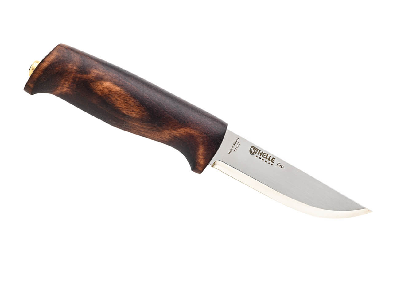 The Gro knife is created to make you grow with nature. A classic Scandinavian style knife shaped with as an invitation to the outdoors. Something we believe will make anyone grow. The Gro knife is a medium size tool with the intention to fill the gap between the Spire and the rest of the Helle line of tools. The birch wood handle has been shaped and sanded by Helle's craftsmen and women to its final shape and dyed dark. The shape is intended to offer a secure grip, without limiting the user but rather allowing him or her to develop carving techniques and grow as a knife user. The blade is a classic scandi grind made of 12C27 steel – Helle sharp right out of the box.