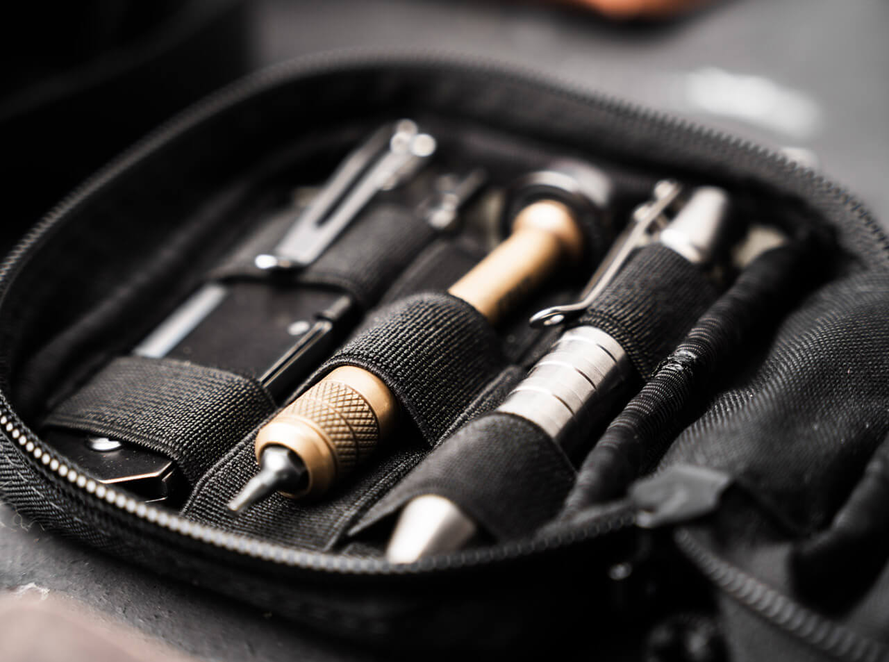Crafted from rugged Cordura 500D, it offers exceptional durability, abrasion resistance, and protection for your pocket knives, multitools, flashlights, and more. Elastic interior straps secure your gear without scratches, while a zippered front pocket holds small essentials.