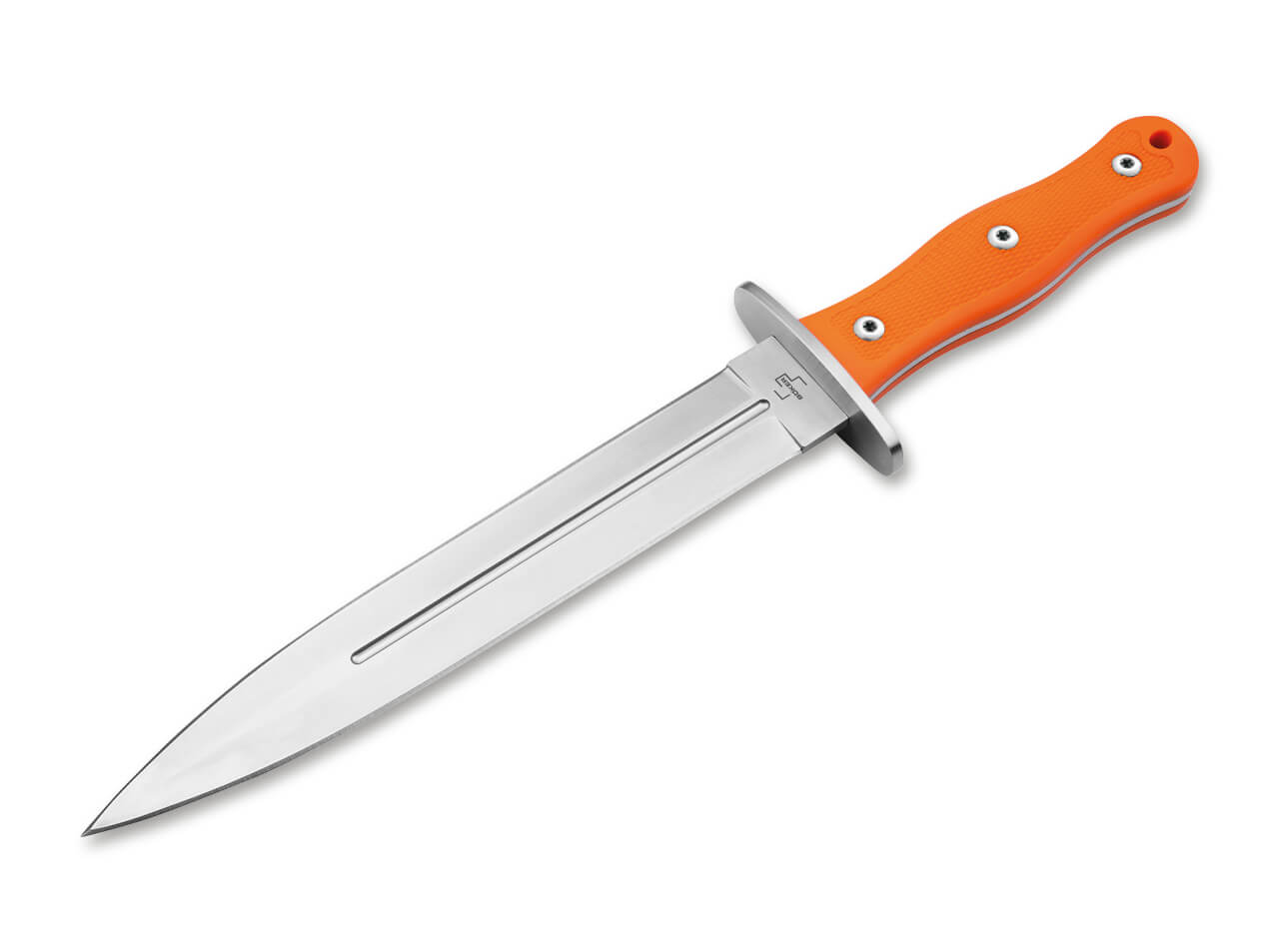 Technisch überzeugt der Saufänger durch eine stabile Vollerl-Konstruktion und eine breite Parierstange aus Edelstahl, die zusätzliche Sicherheit bei kräftigen Schnitten gewährleistet. Die zweischneidig geschliffene Klinge aus rostfreiem Edelstahl 440C bietet ausgezeichnete Schnitthaltigkeit und Korrosionsbeständigkeit – perfekt für den Einsatz unter widrigen Witterungsbedingungen. Eine robuste Nylonscheide mit Gürtelschlaufe und Druckknopfriegel sorgt für sicheren Sitz am Gürtel und schnellen Zugriff im Feld.