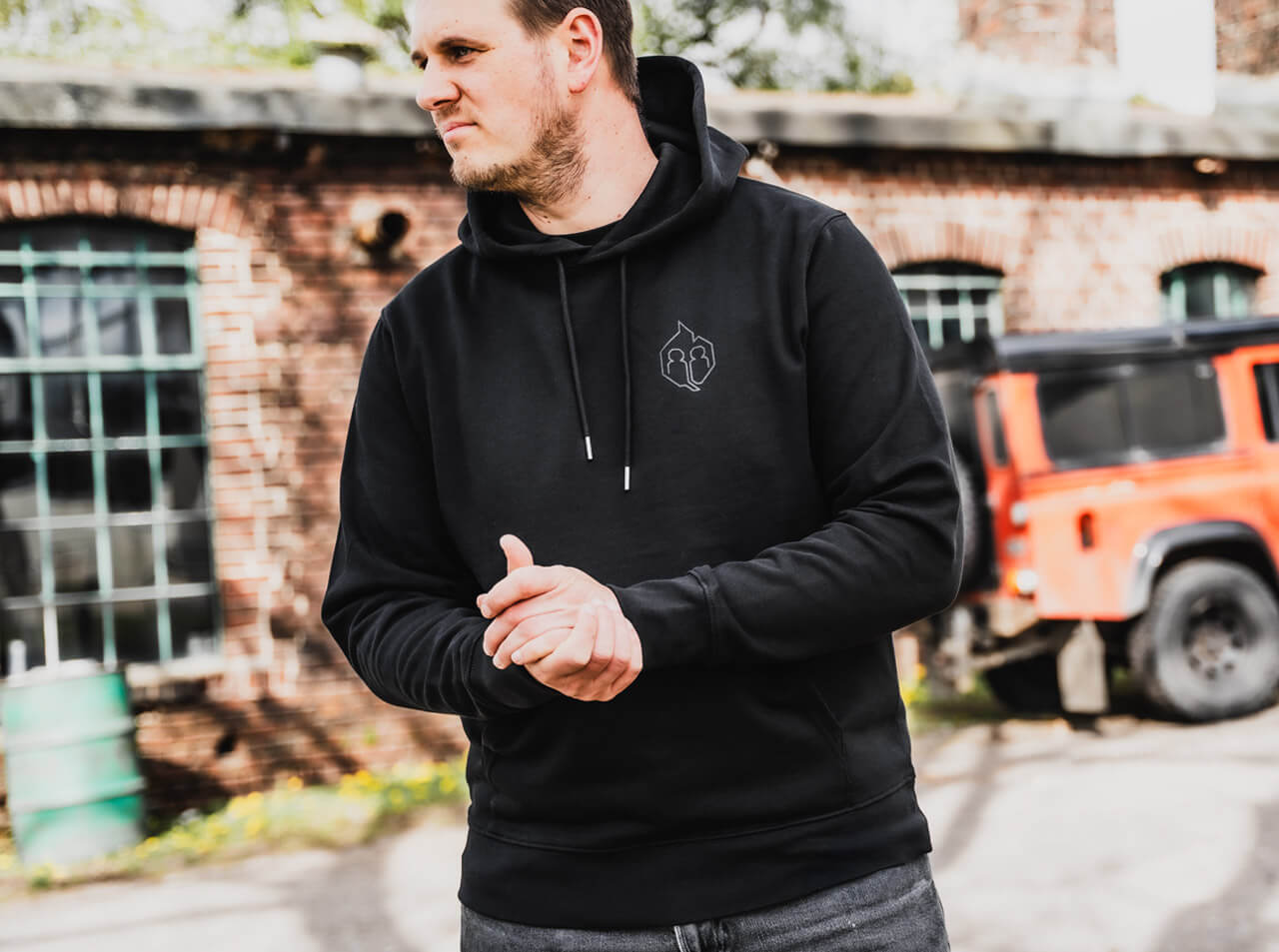 Discover the Naturensöhne Hoodie in Black, the ultimate companion for outdoor adventures, camping, bushcraft, and hiking. This premium hooded sweatshirt, made from 100 % organic cotton and fully vegan, offers maximum comfort and sustainability. The soft inner fleece lining keeps you warm while staying eco-friendly.