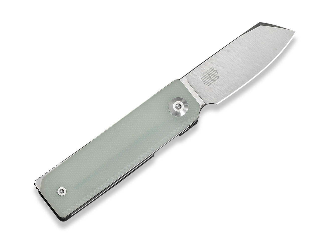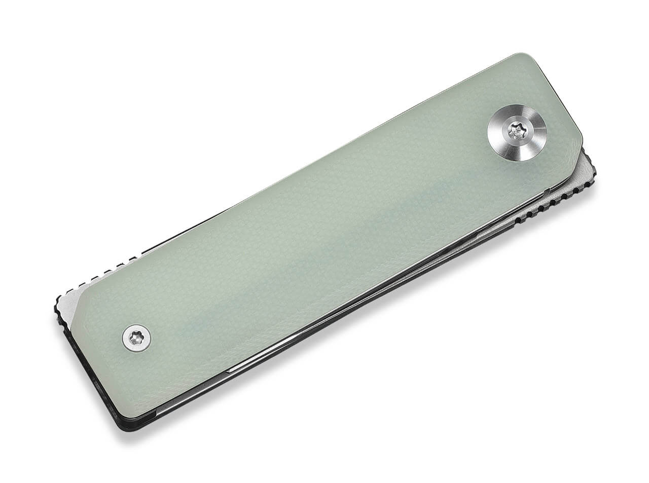 The handle is made from natural G10 featuring a distinctive jade‑green tone that gives the knife a clean and modern appearance. G10 is a highly durable composite material valued for its strength, lightweight properties, and resistance to wear. The surface also provides secure grip and comfortable handling during everyday use.