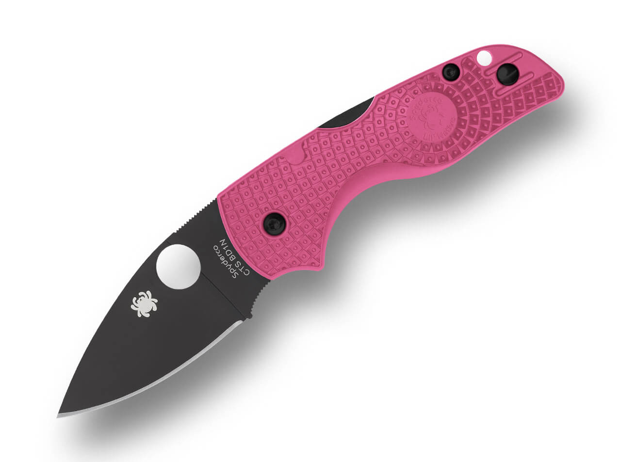 Das Spyderco Lil’ Native Lightweight CTS BD1N Pink FRN mit schwarzer Klinge verbindet die bewährten Eigenschaften der Lil’ Native Lightweight Reihe mit einem auffälligen schwarz-pinken Design. Die Klinge ist aus CTS BD1N Edelstahl gefertigt und mit einer Diamond-Like Carbon (DLC)-Beschichtung versehen, die nicht nur einen markanten Look, sondern auch geringere Reibung und hervorragende Schnittleistung bietet.