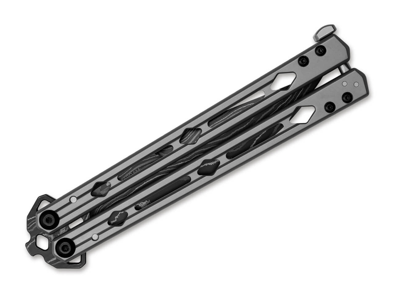 The Kershaw Lucha Damascus is a butterfly knife that is manufactured entirely in the USA. The high-quality materials include the Damascus blade made of 14C28N steel and an all-steel handle. Performance at the highest level is achieved through Kershaw's careful design. For example, the blade is tapered so that the tip has more weight to swing more evenly. The Lucha has two KVT pivot points with ball bearings for particularly easy operation. The handle is rounded so that it rolls effortlessly in the hand. Even the latch is rounded so that it does not get caught when folded down. The latch also has a positive stop so that it never touches the blade.