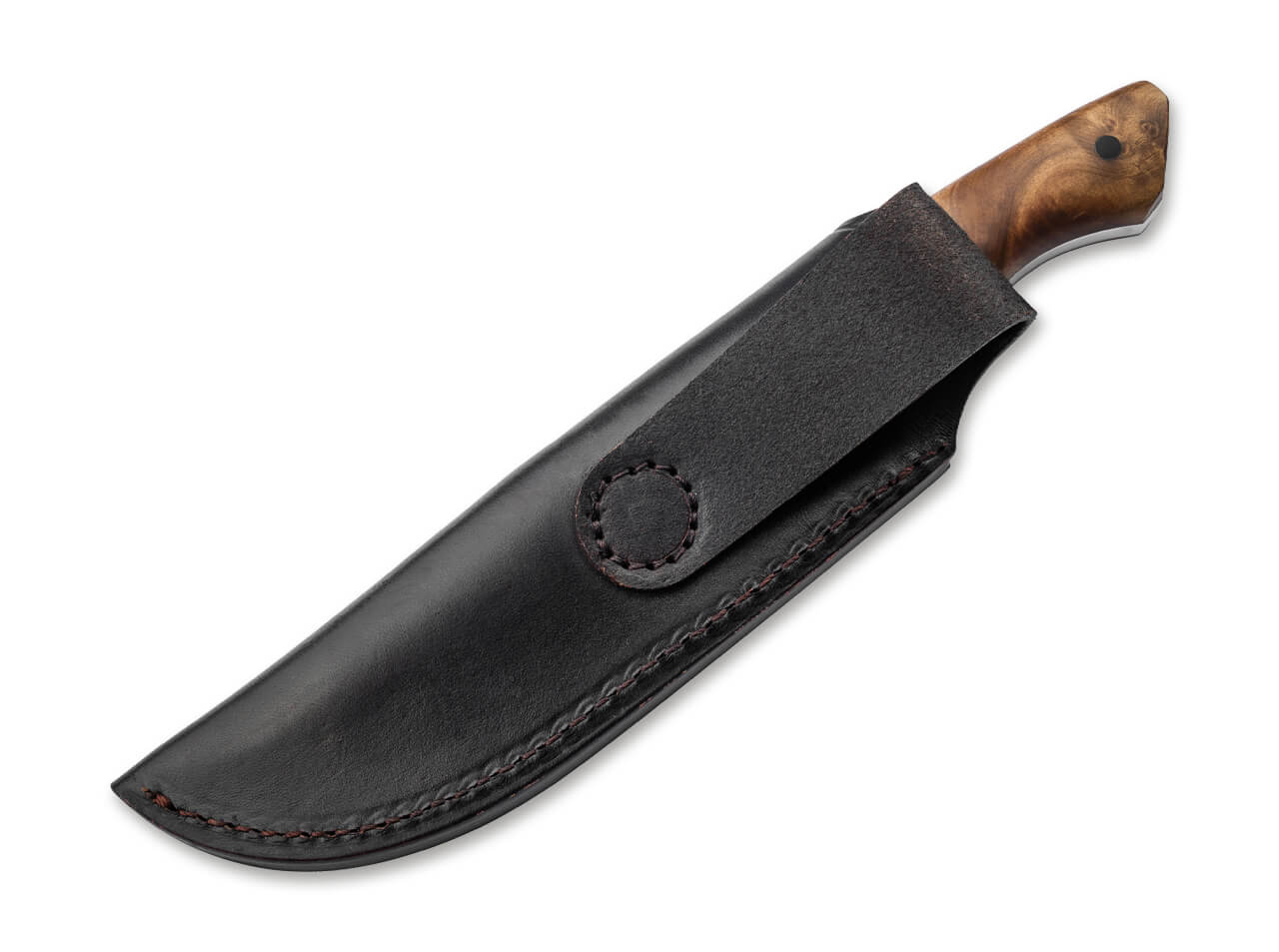 The ergonomic handle scales are made from light brown burl wood and discreetly pinned to the tang. This not only ensures a secure, comfortable grip but also gives each knife a unique look thanks to the natural wood grain.