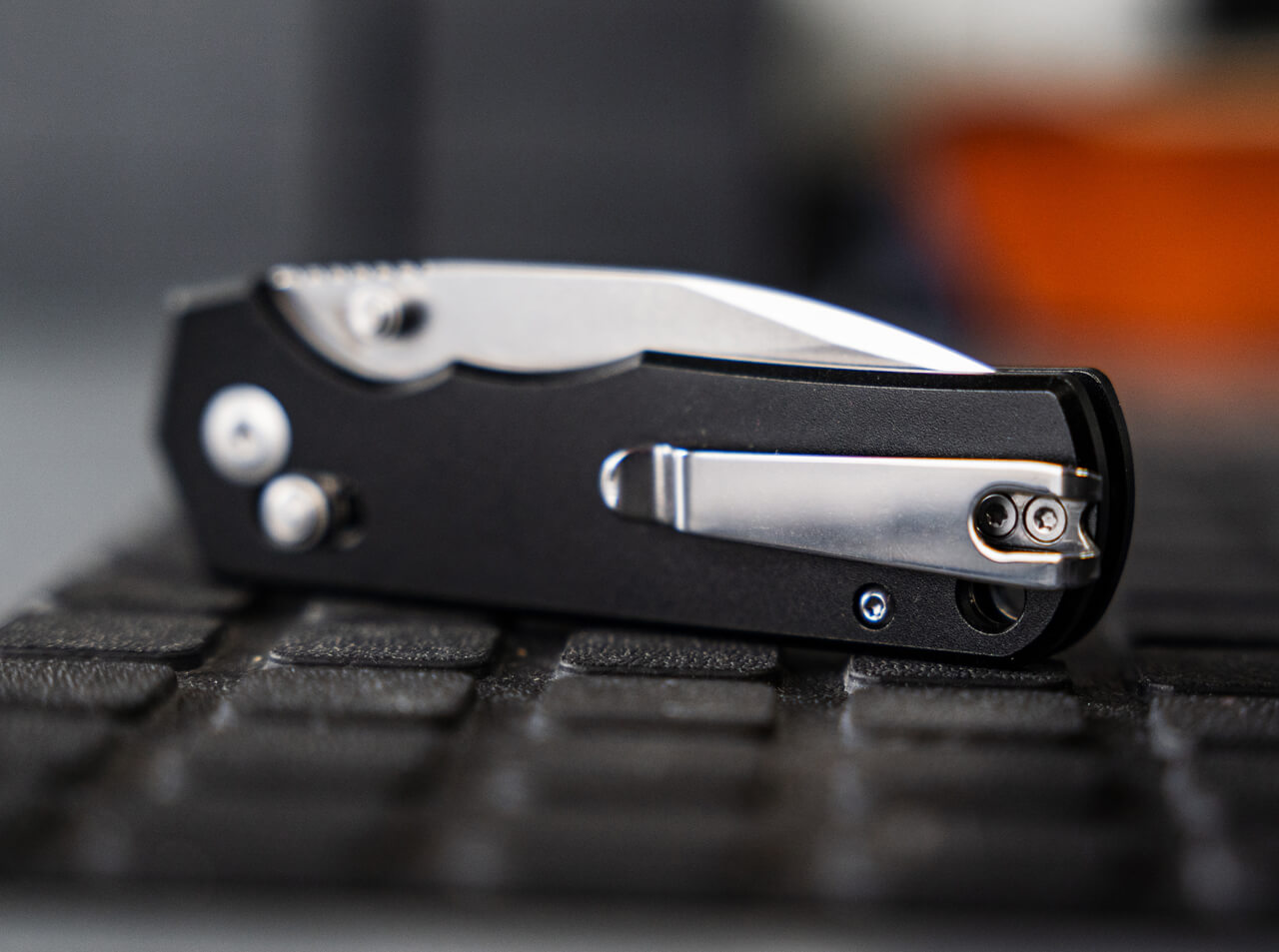 The handle made of elegant black aluminium is a real hand pleaser and is also equipped with a lanyard hole for attaching lanyards.