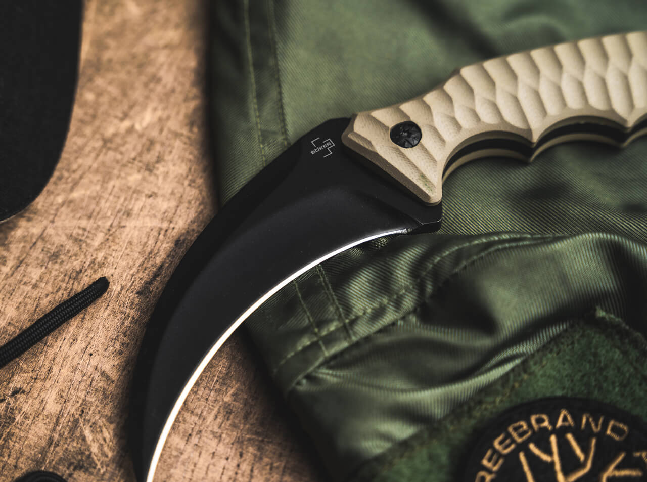 The Boker Plus Spike Karambit is a powerful, fixed-blade full-tang knife that stands out with its rugged construction, high-quality materials, and clean, functional design. The black-coated 440A steel blade and the ergonomically shaped G10 handle in khaki ensure reliable performance and a secure grip. The signature ring at the end of the handle – including a spike – enhances functionality and completes the thoughtful tactical design. The Karambit comes with a custom-fitted Kydex sheath and a belt adapter.