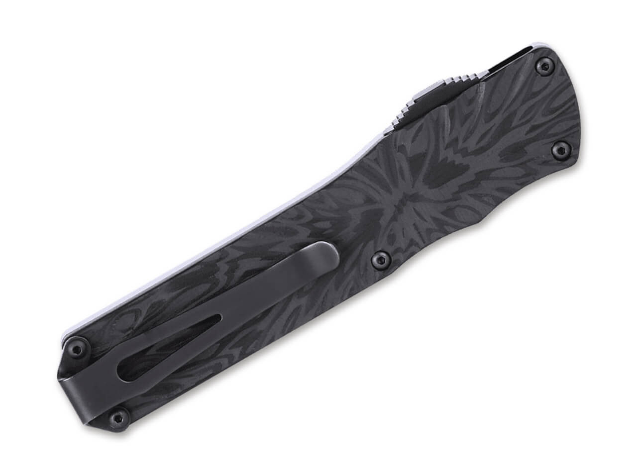 The floral textured handle of the CRKT Twist Tighe Compact has an almost mesmerizing effect. The tactical black color scheme of the aluminum handle with carbon scales is not only fascinatingly beautiful, but also stable, light and fits comfortably in the hand. An automatic OTF mechanism ensures intuitive opening and closing of the double-edged Spearpoint blade made of powder-metallurgical MagnaCut, with the blade springing out of the front part of the handle and disappearing again just as quickly when the slider on the back of the handle is pressed. But perhaps the most intriguing feature of the American-made Twist Tighe Compact is its creator, designer Brian Tighe, a longtime CRKT employee and versatile knifemaker known for his bold designs and impeccable craftsmanship. With deep-carry clip (tip-down).