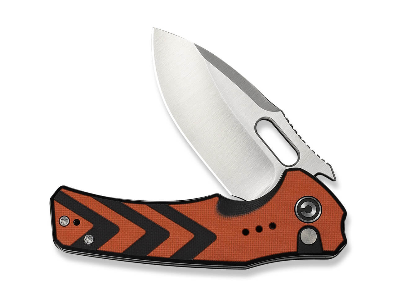 The CIVIVI Vexron with an orange and black G10 handle is a modern, versatile EDC pocket knife that combines everyday functionality with reliable performance. The durable 14C28N drop point blade features a satin finish, keeping it visually appealing while protecting against wear.