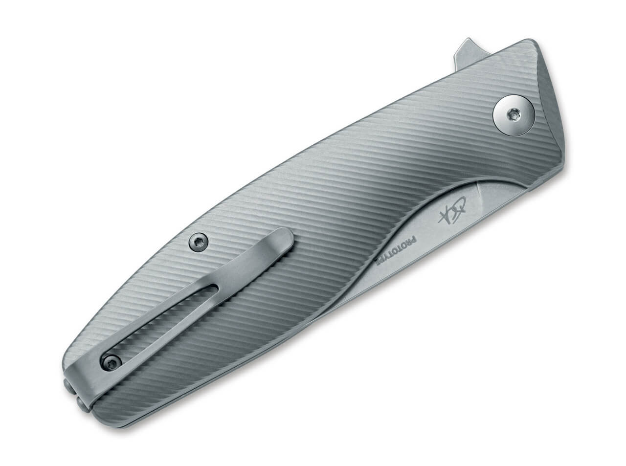 The sandblasted titanium handle features a subtly rounded profile for enhanced control and comfort. The flipper mechanism ensures fast, smooth deployment, while the secure button lock mechanism offers safe and intuitive operation. A deep carry titanium clip (tip-up, right side) allows discreet everyday carry. Sandblasted AISI 303 screws complete the high-quality construction of this premium EDC folding knife.
