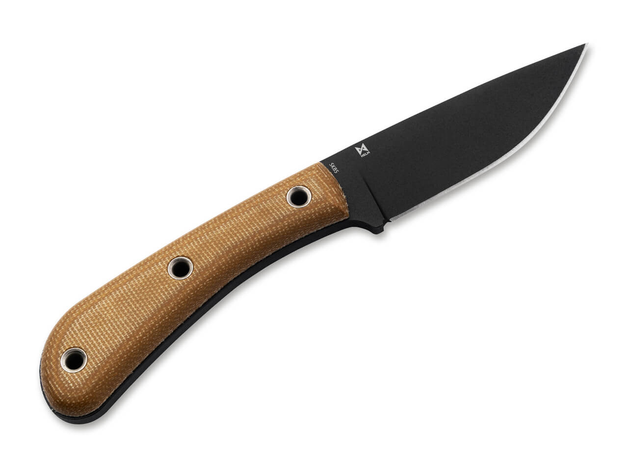 Die stabile Droppoint-Klinge aus SK-85 ist mit einer abriebfesten schwarzen Pulverbeschichtung versehen und in Vollerl-Bauweise ausgeführt, sodass sie auch größeren Beanspruchungen problemlos standhält. Der konturierte Griff aus braunem Micarta liegt dank der feinen Texturierung stets sicher in der Hand und ermöglicht eine Vielzahl sicherer und komfortabler Griffhaltungen. Schnelle Griffwechsel in den Reverse-Grip oder zurück werden durch die ergonomische Form des Griffs unterstützt. Die charakteristischen Hohlnieten dienen zusätzlich als Fangriemenöse. Mit passgenauer Kydexscheide und praktischem Gürteladapter.