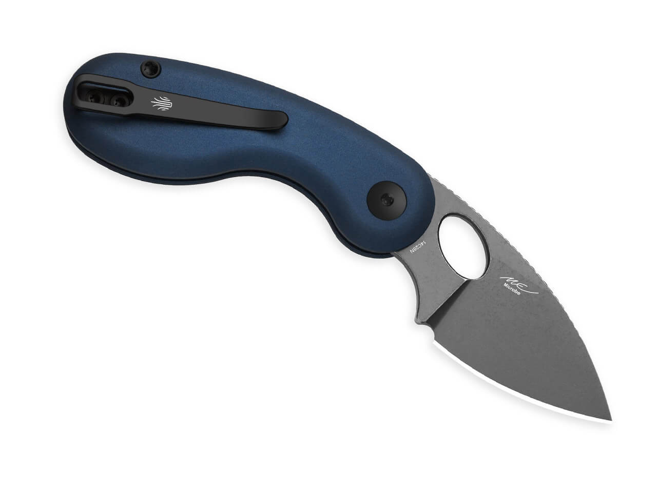 Entworfen von Maksim Epifantsev, lässt sich das Messer über ein integriertes Daumenloch schnell und sicher öffnen. Der Button-Liner-Lock sorgt für eine zuverlässige Verriegelung und eine intuitive Bedienung. Die blau eloxierten Aluminiumgriffschalen sorgen für geringes Gewicht, Stabilität und eine moderne Optik.
