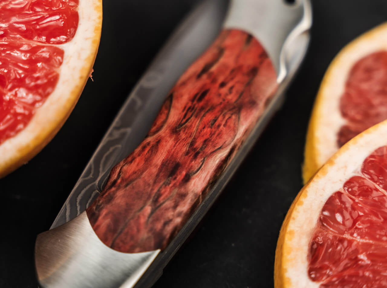 Der Griff des Böker Optima wird aus gesintertem Neusilber gefertigt und mit edlen Griffschalen aus stabilisiertem Maserbirkenholz in einem intensiven Rot-Orange versehen. Diese Kombination aus hochwertigen Materialien sorgt nicht nur für außergewöhnliche Haptik und Optik, sondern auch für eine lange Lebensdauer und maximale Zuverlässigkeit.