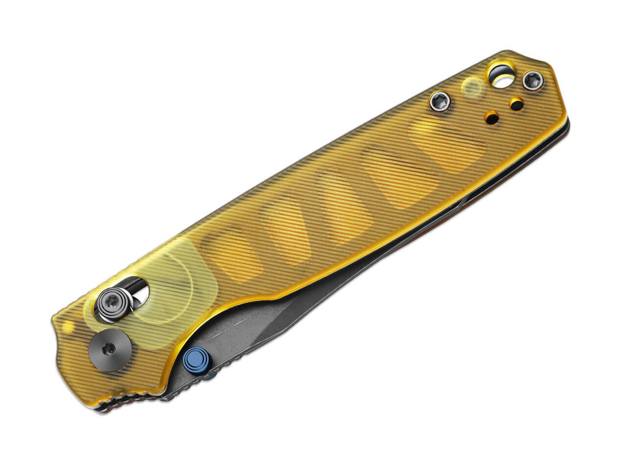 Der gelbe Griff aus PEI liegt sicher in der Hand und unterstützt präzises Handling. Ein umsetzbarer Tip-Up Clip ermöglicht flexibles Tragen am Gürtel oder in der Tasche, während der Clutch-Lock für zuverlässige Stabilität beim Schneiden sorgt.