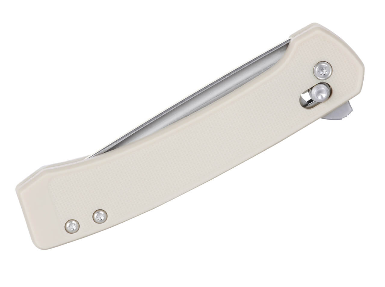 Der Flipper ermöglicht eine schnelle und einfache Klingenöffnung, während das Crossbar Lock für eine sichere und stabile Handhabung sorgt. Das weiße GRN-Griffmaterial kombiniert hohe Haltbarkeit mit einem modernen Look und einem leichten Gewicht. Die gerade Rückenschliff-Klinge ist vielseitig einsetzbar und eignet sich besonders für präzise Schneidaufgaben.