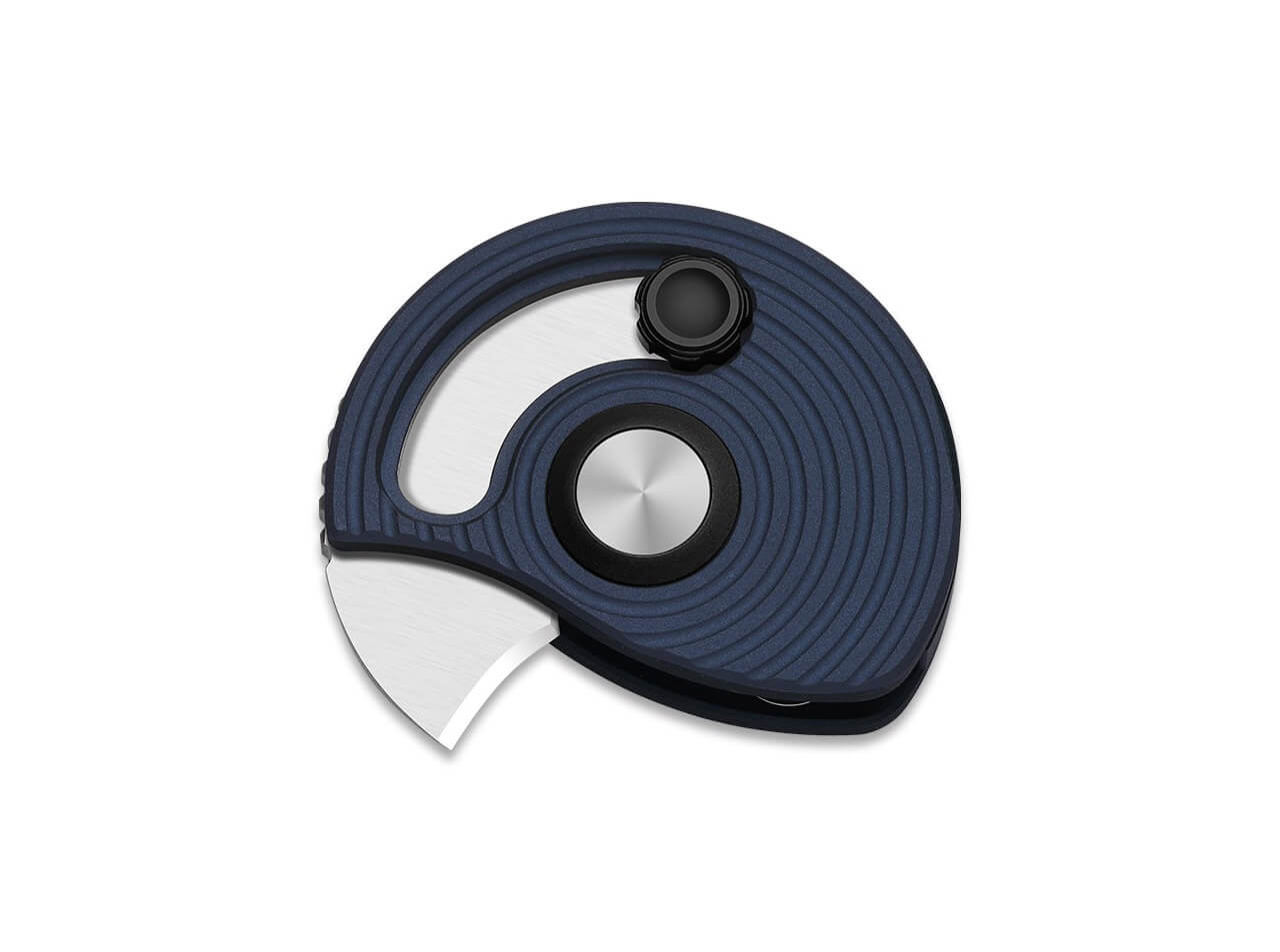Ein besonderes Highlight ist der spiralförmige Öffnungsmechanismus: Die Klinge fährt über den Daumenpin aus dem runden Gehäuse heraus und zieht sich beim Schließen schneckenartig wieder in das Gehäuse zurück.