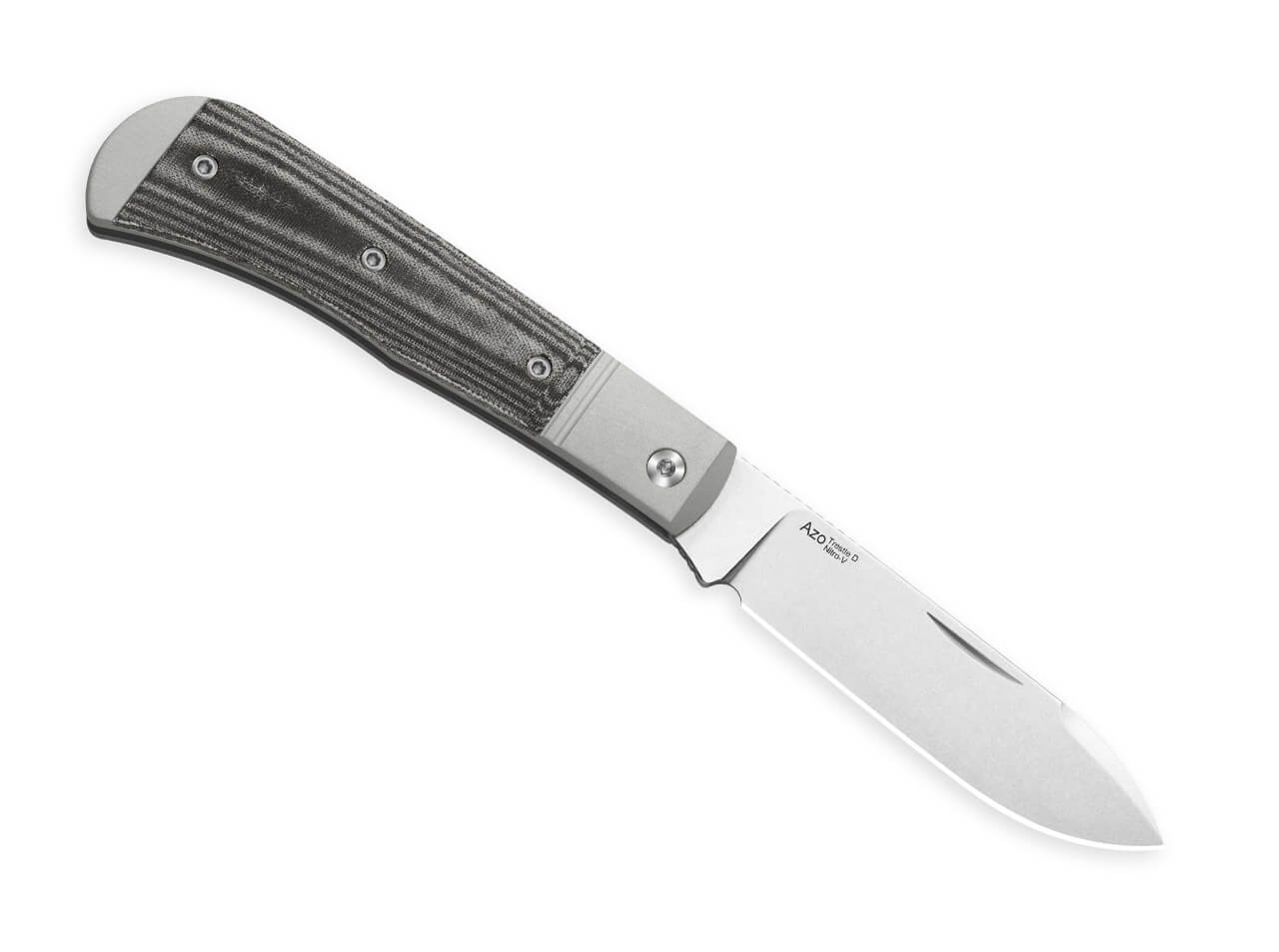 Entworfen von Azo, verfügt das Messer über stabile Backen aus Aluminium und Griffeinlagen aus Norplex Ultrex Micarta, die sicheren Halt und eine ansprechende Optik bieten. Der Slip-Joint-Mechanismus ermöglicht ein sanftes Öffnen und Schließen der Klinge ohne Verriegelung, ideal für alltägliche Aufgaben.