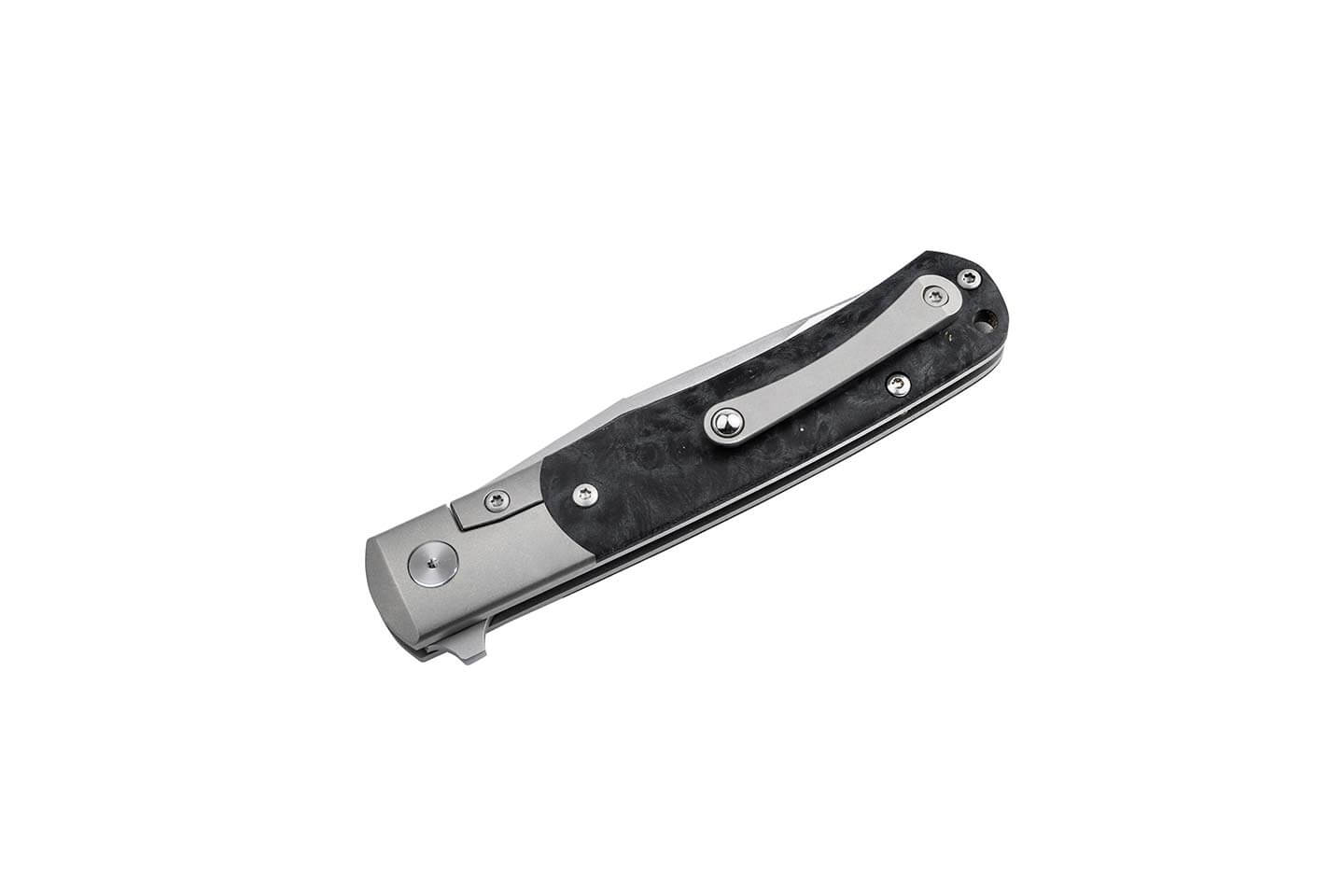 Die lange Backe des Titangriffkörpers interpretiert den nostalgischen Zeitgeist neu und formt das TRPPR mit seinen Griffschalen aus stabilisiertem Black Amboina Holz und dessen einzigartiger Maserung zu einem neuen Leitbild zeitgenössischer Messerkultur. Dekorative Akzente setzen die vordere Klingenachsschraube, bei der das berühmte Böker Baumzeichen verwendet wird, und der aus dem Vollen gefräste Titanclip (Tip-Up/r) mit Kugel. Zum Schutz vor Schmutz und Kratzern wird das Böker TRPPR in einem hochwertigem Filzetui ausgeliefert. Handgefertigt in der Böker Manufaktur Solingen.